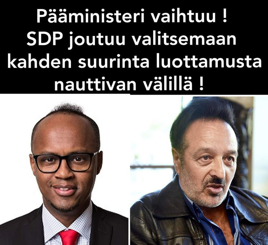 Jota kaikki demarit on palvonut.......vuosikymmenet "Rehti" Anttia. Näyttää siltä et Antti kaatuu saappaat jalas.....Tai sit vedättää.... Aikaa on keskiviikkoon klo 14:00 asti. Saa nähdä miten käy. Luuletko että pääministerin vaihdon jälkeen ja vihreiden mulkeroinnin jälkeen kansalla, oppositiolla ja muilla hallituspuolueilla on enää luottamusta hallitusta kohtaan? Ja ainakaan näiden toimenpiteiden jälkeen miten hallituspuolueet venkoilee k.o asiasssa. Ei sada ainakaan demareiden, kepun ja vihreiden laariin. Pääministeri, Ulkoministeri ja Ohjausministeri myskyn silmäs.......Ja Kepu hämmentämäs soppaa..... Epäluottamuslause pitäis saada esittää niin että Vihreät ja Sdp on samaan aikaan epäluottamuslausekkeen alla kun sitä käsitellään eduskunnassa. Uudet vaalit tullee ennemmin tai myöhemmin. Epätietoinen kysyy. Onko hallituksella kansan tuki? Mun mielestä ei. Ja pian nähdään kenelle jäi "MustaPekka" kouraan. Lopuks mä luulen et huomenna tullaan esittämmän myös Ulkoministerin toiminnasta vihreitä kohtaan epäluottamuslausetta. https://www.is.fi/paakirjoitus/art-2000006329183.html https://www.iltalehti.fi/politiikka/...6-dee83a6905f9 |
