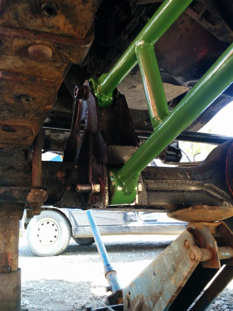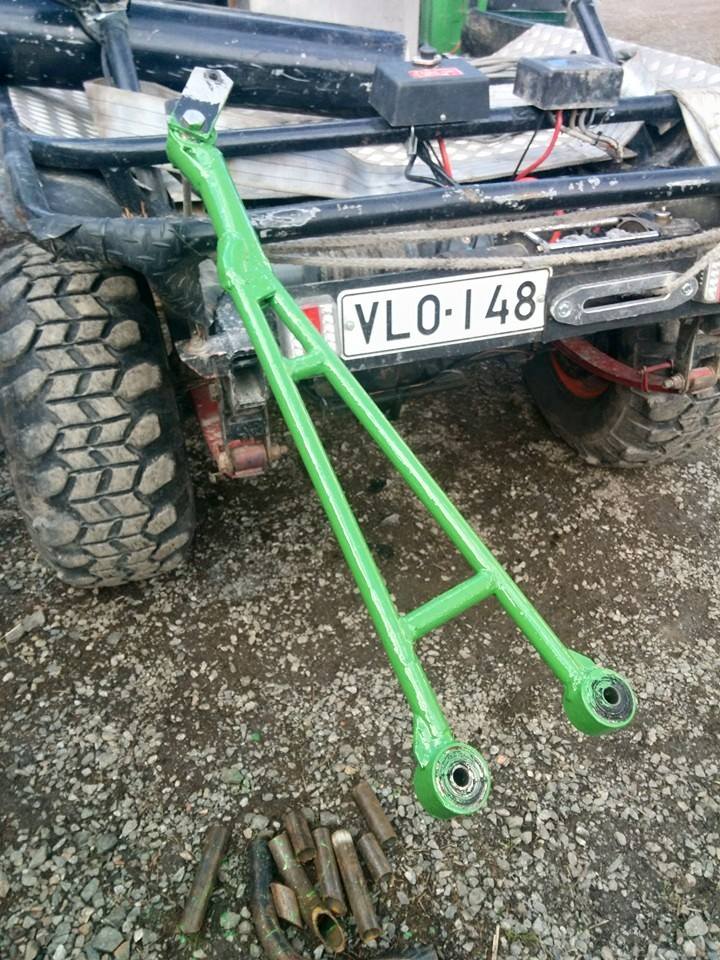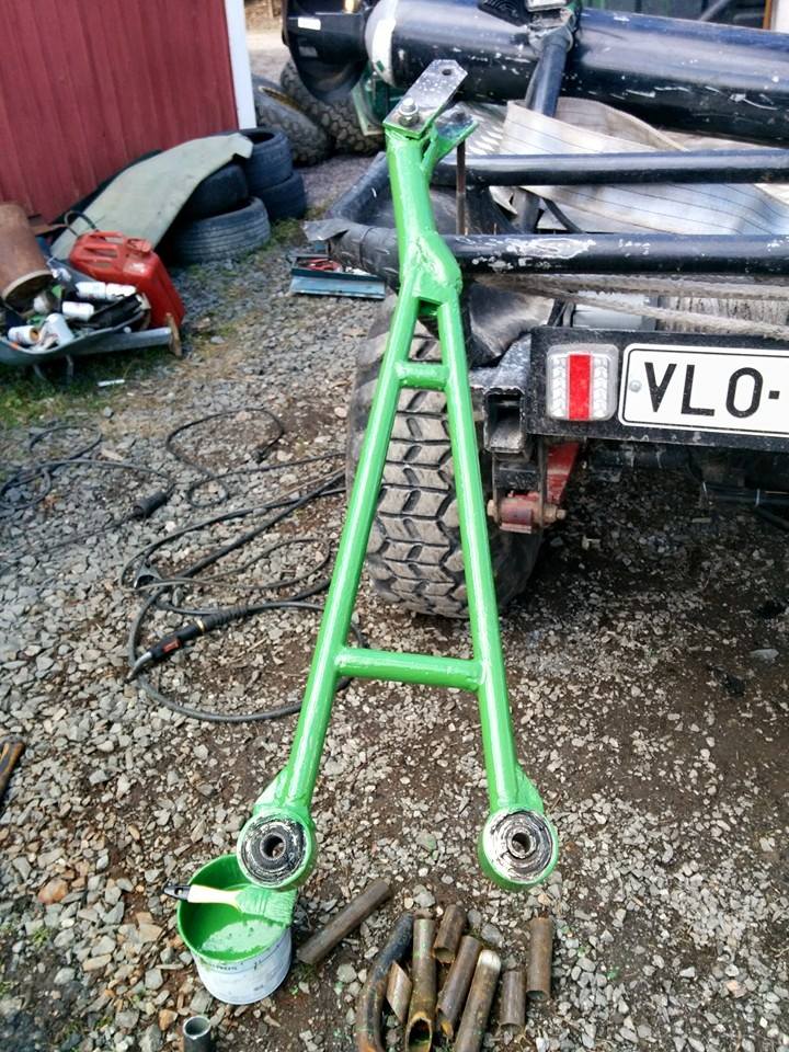 Tänään tuli modattua etupään tractionia ja vehvisteltua kiinnityksiä. Akselista leikkelin myös turhia palikoita irti.