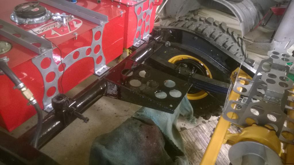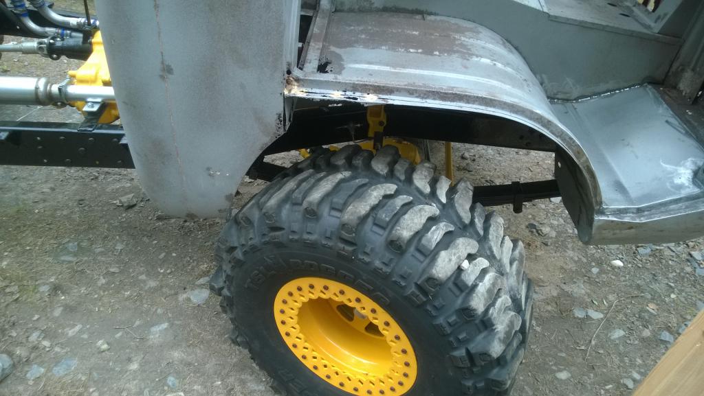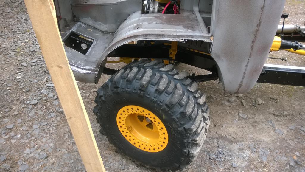 että saa paremmin tilaa rungon ja korin väliin. Ei ota joustoissa sitten kori runkoon niin helposti. Vanteiden offsettiä ei voi tuosta muuttaa, takana reilu sentti jousiin etäisyyttä ja vakio käännönrajotuksilla edessä mahtuu juuri ja juuri olemaan ettei osu jousiin. |