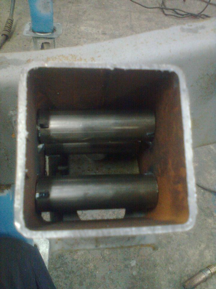 ja sehän ei siis kannata:p kaik mitä piirsin hylkäsin samoin tein ku menin pajalle :D. parempi vaa ku tekee vaan mikä sillo sattuu hyvältä tuntuu:) no tänää järkiinnyin ja kävin nyt iltasel alottamassa keulan.. öö .. "ruoste" korjauksia:D jos jotai jupinaa tulee konttorilla ni tää runkohan oli kauhian mätä nii happamia osiaha mie vaan oon vaihtanu.. :D tarkotus siis oli tehä puskuri mis ois vinssi kiinteesti ja vaa parit pultit aukasemal vois heittää taakse jos tarviis. osottautu luultua hankalammaks ja ku täs on nyt kauhia hoppu niiku aina ni tehää sit joteki muute kätevästi. ihan ekaks kaivoin romulavalta 80x80 putkea pätkän. http://forums.offipalsta.com/picture...ictureid=93193 sitte pistin sahalla viipaleiks ja oikee tarkkoi ku ollaa ni 30 asteen kulmassa sahattu:D sisää heppailin putkesta holkit ni ei ruttaannu ku kiristelee pultteja. ja holkki putkissaki näkyy pienet zn kolot varmuudeks vaan. http://forums.offipalsta.com/picture...ictureid=93194 tuommoset niistä tuli. 30mm upotin rungon sisälle vie ja taka puoleltaki hitsailtu minkä sai kiinni. kotelo oli viel auki sillon. pääty tulpassa tarkka silmäinen huomaa viitteitä maltan ristiin? ainaki se oli tarkotus:D etu riippujen konsolit turasin kans olevinaa paremmi kiinni. alu perin noil kuuma niiteillä..:rolleyes: jotaki ihme shaibaa tuon rungon hitsaukses aikanaa käytetty nois limi liitoksissa ku ei se oo juotos ei puikko saumaa eikä etenkää mikki saumaa.. mitä lie? http://forums.offipalsta.com/picture...ictureid=93195 eli putken tunoihin tulee kiinni ite puskuri.. sit joskus nyt vähä hankala tehä ku auto puuttuu ympäriltä:D ja siintä siipikarja raudasta tulee jäykätty levy mikä pultataan kiinni noihi sisempiin "konsoleihin" ja sen päälle panen vinssin. soikeita reikiä koittanu käyttää ku tuo mitottelu ei oo vahvinta alaa:p http://forums.offipalsta.com/picture...ictureid=93196 ja viel after kuva. just puhallettuna. nii ja onnistuinha mie jo piha rakvaattorilla survomaan tuon vasemma puolen runko aisan kieroks..:o ei onneks pahasti vääntyny. jokusen sentin:D no letku sahalla vähä lämpöä ja lekaa eiköhä se oikee. |