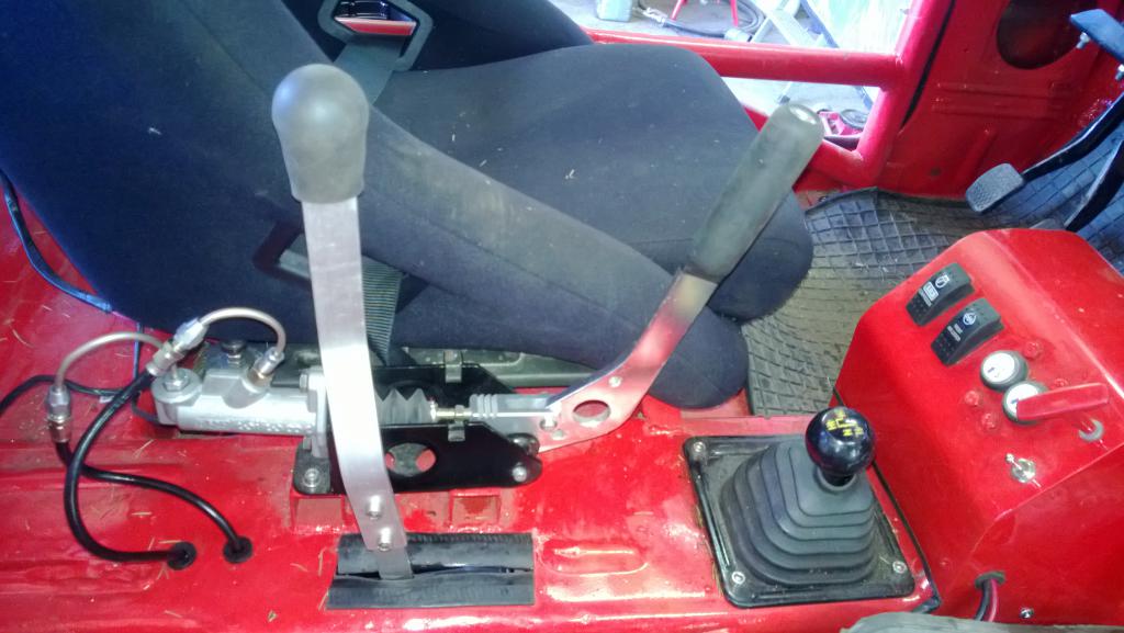 Nyt kun on jonkin verran tullut ajeltua, niin aina keksii parannettavia asioita:) Nelivedon vapauttimen keppi oli vähän huonossa paikassa, kun sen sai aina penkkien välistä kaivaa ja etsiä. Mä tein siihen tuollaisen jatkovarren:cool: