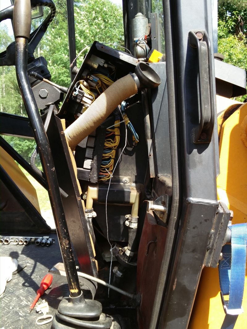 Tämä olikin mahtava homma että olette tänne jaksanut selvittää Jameksen sielunmaisemaa. Tulee varmasti itsellekkin tarpeeseen sivuilta löytyvät infot. Itellä sai hommat aloittaa starttiremontilla. Tai pelkkä solenoidin vaihto riitti tällä erää. Seuraavaksi jarrujen kimppuun. Poljin menee pohjaan ja nihkeästi jarruttaa. Käsijarru ei toimi ollenkaan. Ja olis pari kysmystäkin. Mistä Jameksen tyyppikilpi löytyy? En pikasella etsinnällä löytänyt. Tartteis saada kone uudelleen rekisteriin kun kilvet on aikanaan palautettu konttorille. Hoksasin että kaivuulaitteelle tulee lisähyde liittimet. Oliskohan nämä mahdollisesti tilttikauhalle? Hytistä löysin kaivuuvivuston vasemmalta puolen lattiasta yhden katkenneen vivun tyngän, joka saattaisi olla ehkä yhteyksissä pikaliittimiin. |