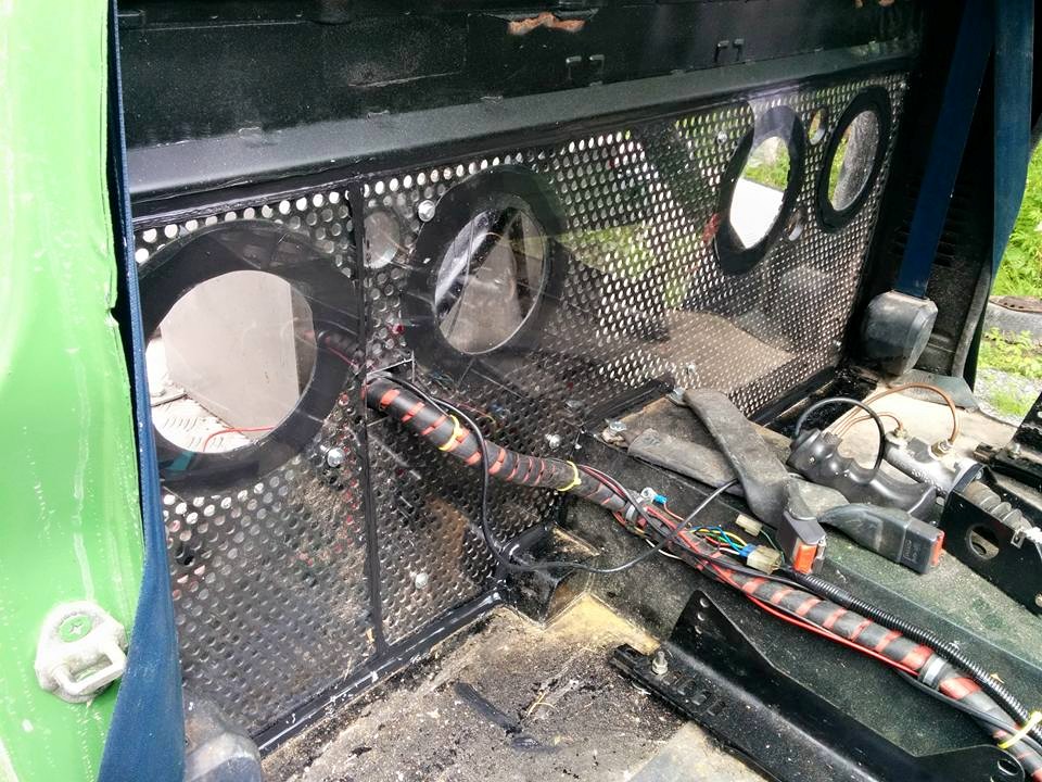 Se on korin rakentajan juttuja, ilmeisesti jotain kaiutin paikkoja ollut tulossa :D Itse pidin seinän tollasena koska nyt hytistä näkee auton alle kun laittaa vaan pleksin tohon ritilän päälle. :)