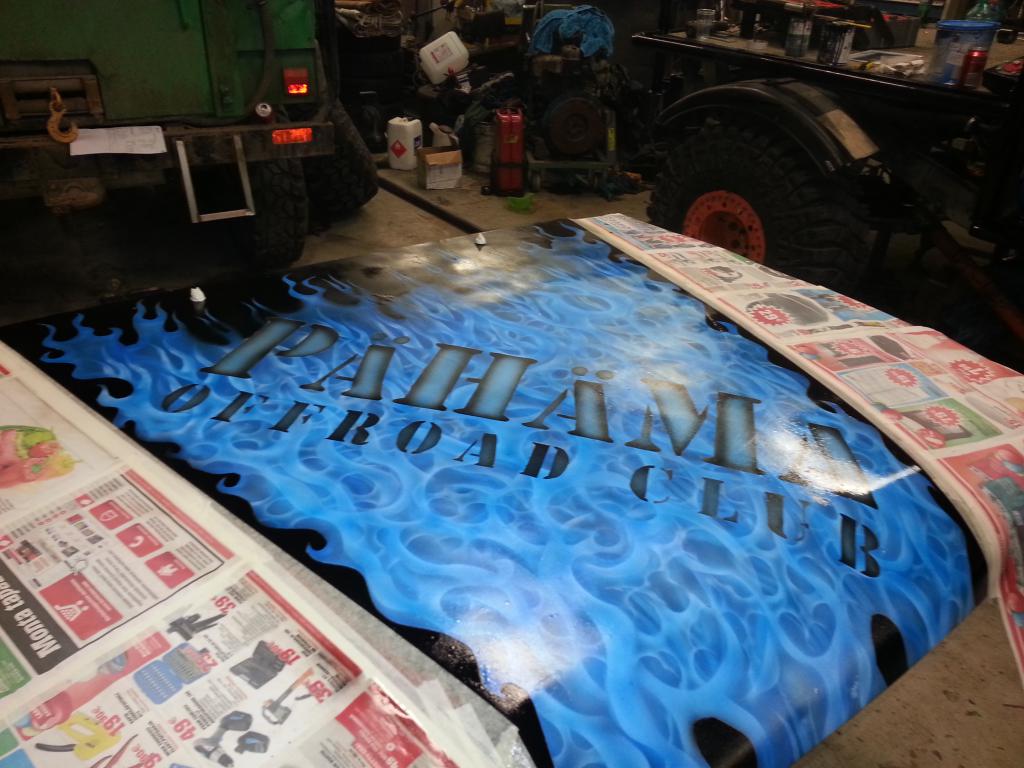 Perjantaina saapuu tallille kynäruiskumaalari joka ehostaa ton konepellin.. sit näkee mitä siitä tulee :)