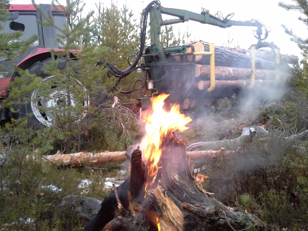Tuommonen kuva syksyltä. Muute kyllä mukavaa hommaa mutta tuo palava kanto oli just menny takarenkaa kylestä sissää. Laitoi sitte palamaan ku ootteli kaveria renkaa irrotuksee.