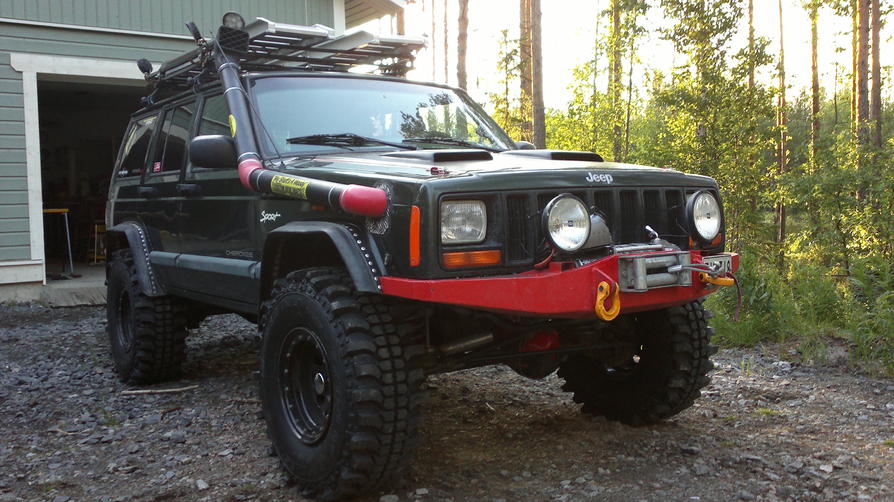 http://i6.aijaa.com/b/00681/6553917.jpg Sitte keväällä 2010 piti saada kumit mahtumaan http://i7.aijaa.com/b/00723/6553918.jpg No pakkohan sitä oli vähän levittääkin http://i9.aijaa.com/b/00890/6553921.jpg Ja tämmönen se on tällä hetkellä. RoughCountry 4" jousikorotussarja iskareineen ja helyineen, 15x10,5" Daytona vanteet 33x12,5" AT renkailla. Tarkotus oli vaan korottaa, mut sehän levähti kuitenkin yli 7" :rolleyes: No eipähän ainakaan oo mikään tötterö. http://i5.aijaa.com/b/00323/6553919.jpg |