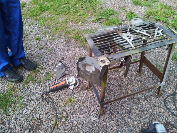 https://lh3.googleusercontent.com/-A...0+14.32.36.jpg Rungon puolelle tulevan liinnikkeen tein uuden, kun iskarin mukana tullut putken ympäri pultattava kiinnike ei oikein passannut. https://lh3.googleusercontent.com/-Z...0+15.44.25.jpg 6 millistä lattaa, jonka taittamiseen hyödynnettiin prässiä ja jotain aarrekasasta löytynyttä kankea:D https://lh4.googleusercontent.com/-W...0+16.14.04.jpg Kiinnike hitsattu paikalleen. https://lh6.googleusercontent.com/-k...0+17.54.29.jpg Pikainen testikierros virallisella koeajolla osoitti, että ohjausvarsi ei ota kiinni. https://lh3.googleusercontent.com/-V...0+18.53.52.jpg https://lh6.googleusercontent.com/-l...0+18.53.40.jpg Vaikka kuvassa näyttääkin siltä, ei iskarin kiinnike ota kiinni. https://lh4.googleusercontent.com/-V...0+18.55.46.jpg https://lh4.googleusercontent.com/-a...0+18.55.55.jpg Ei ota kiinni tässäkään:) |