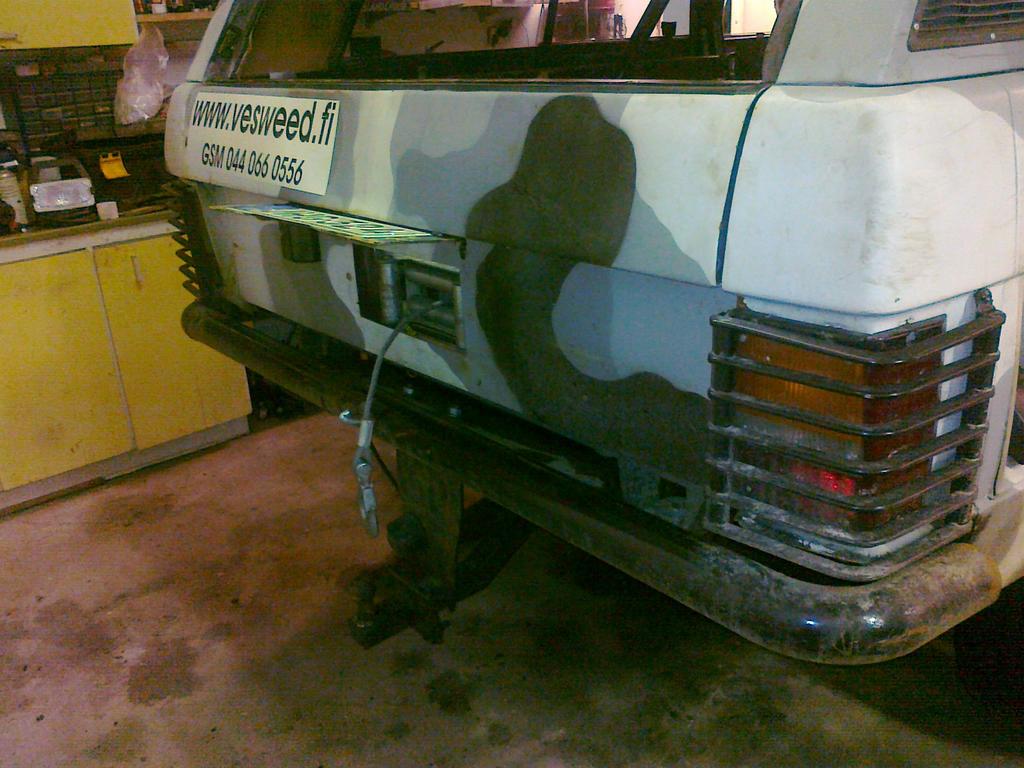 http://forums.offipalsta.com/picture...ctureid=129205 Akseleita tuossa mallailin uusilla puslilla ja taitaa olla pikkasen liian löysät tähän alustaan, ainakin osa niistä. Tyhjillä akseliputkilla vähän vääntelin... Ja takana ois vääntyny vielä lisääki mutta ku tuo lattia on niin lähellä. Etunen ei hirmusti väänny tyhjänä mutta roikkuu lattiassa jota se ei kyllä tehny vanhoilla puslilla http://forums.offipalsta.com/picture...ctureid=129204 http://forums.offipalsta.com/picture...ctureid=129203 http://forums.offipalsta.com/picture...ctureid=129202 Ja koriki pääsi nyt lähemmäs työmaata, piitää käyttää kaikki posket auki ja kattoa mitäs se on reilun vuoden seisonnassa syöny. Äkki vilkasulla näyttäs ettei mitään isompaa oo tulossa mutta koskaan ei tiiä. http://forums.offipalsta.com/picture...ctureid=129201 Ja nosto oli vähintäänkin virallinen :) Tuo romukasa tuossa on kakkos rojektin(broncon) toinen varaosa-auto oottamassa viimestä kyytiä pois. |