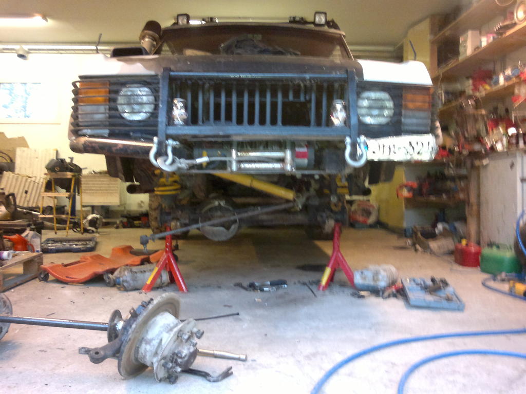 Pääsi taas vähän käymään tallissa ja takapää ja etupää ois heppailtu paikoilleen, ainoastaa etupanhardi on vielä laittamatta joka tulee kun saa painon päälle niin saa sitten keskitettyäki. Ostoslista taas kasvaa, uudet etu- ja takaiskarit(sen ku pitenee) ja eteen tuplanivelkardaani.... näyttäs sitä että alkaa rangeenkin tulemaan eteen ulosjoustoja ihan kivasti :)