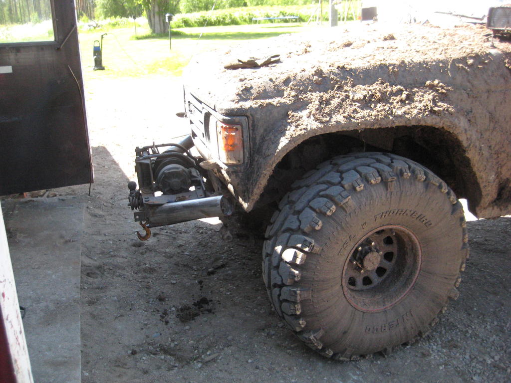 ilmanpaineita en myöskään ole kokeillut laskea paljoa mutta uskon näitten renkaitten osalla olevan enemmän kuin hyvä asia jos metsään mentäessä laskee ilmat pois.mutalammikot sun muut tottakai menee vauhdilla mutta kun lukot ja teho uupuu vielä niin pääsevyys ei ole kaksista. jos 33 vertaa näihin niin katu-uskottavuus ja maavaran lisäys varmasti ainoat parhaat puolet niinkuin kaikilla isoilla renkailla! jostain sivuilta luin ettei ainakaan kehuneet näitä mutaisiin olosuhteisiin. mekaanista vinssiä koitetaan sovitella ensi viikolla ja etsiä ratkaisua kuinka sen saa syvälle |