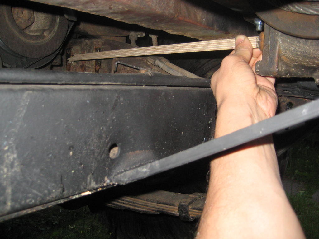 homma ei etene ollenkaan kun ei ole kävellyt vielä vastaan panhardia mitä voisi suunnitella keulille.sellaisen tarvitsisin että pääsisi kierteitä kyhäämään. taka-akselilla siirsin jouset alapuolelta yläpuolelle ja auto nousi aika paljon ylemmäksi mutta hivenen se on kuitenkin jo tipahtanut. siinä samalla purin lehtijouset ja kolistelin ruosteet niin hyvin välistä pois kun ne kohtuudella lähti ja sivelin jotain jäykkää vasua väliin. taakse tuli samalla rasvattavat riiput.