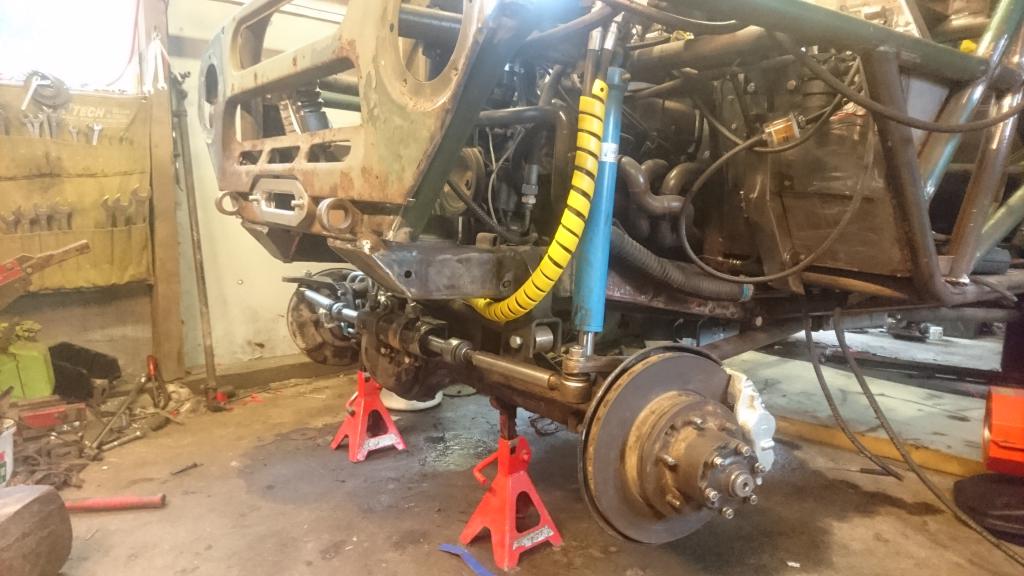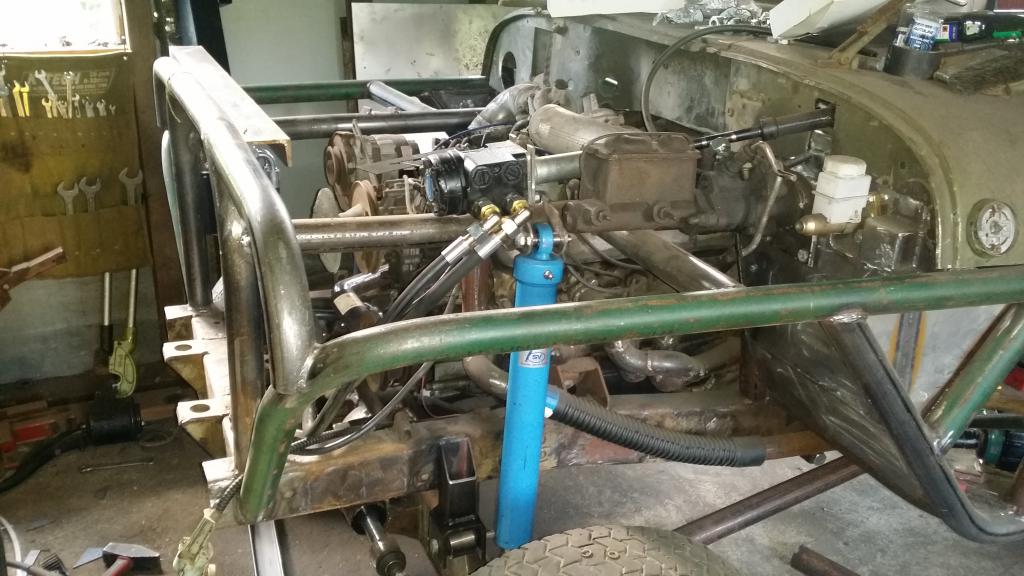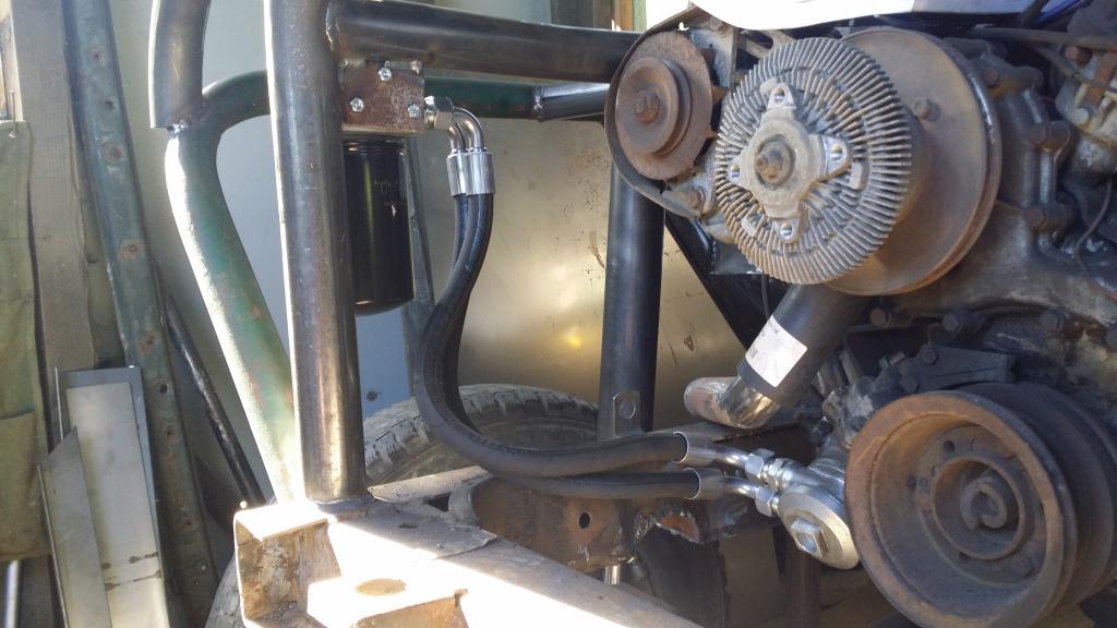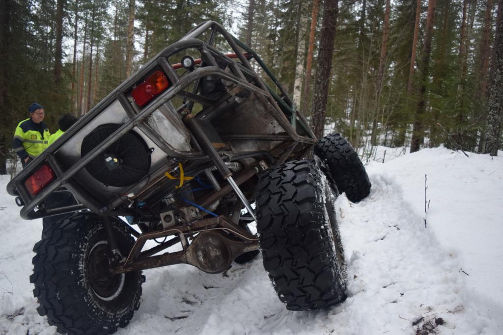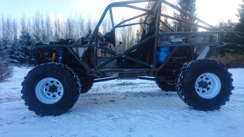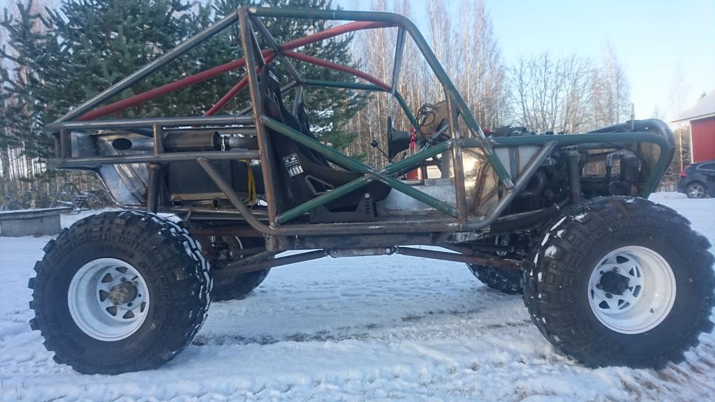 Ensin vedet pois koneesta ja sitten pakkasnesteet tilalle. Sitten pienet lämmityskäytöt että saa nesteet sekaisin järjestelmässä. Pakkasnestemittaria ei ollut mukana, mutta ei se enää jäädy niin pahasti kuin pelkillä vesillä. Pitää tarkistaa sitten seuraavalla kerralla pakkasenkesto. Etuakselikin on enää öljyjä vailla. Niputin jarrutkin jo paikalleen: http://forums.offipalsta.com/picture...ctureid=197804 Hieman jäi harmittamaan kun ei löytynyt sopivia banjoliittimiä ohjaussylinteriin, putket nousi aika korkealle: http://forums.offipalsta.com/picture...ctureid=197805 Muilta osin alkaa olla ohjaus nipussaan. Ohjauksen rajoituksetkin on nyt katsottu kohdilleen. Putkituksen osalta jäi jotain hampaankoloon. Mutta kun kierrätti akselia ees-taas ja ristiin rastiin, niin ei siellä mitään katastrofaalista näkynyt. Mikään ei osunut mihinkään arkaan paikkaan, vähän joutui koloamaan runkoa lisää. On viittä vailla pyörillään tämäkin epeli: http://forums.offipalsta.com/picture...ctureid=197806 Paljon pikku juttuja on vielä tekemättä. Mutta onneksi on myös paljon isompiakin juttuja vielä työlistalla. Ettei vaan odottavan aika kävisi pitkäksi... |