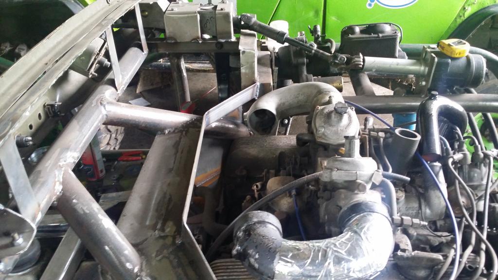 Nyt kun on saatu moottori käymään, niin oli jäähdytysjärjestelmän vuoro työlistalla. Putkisto paikoilleen, vedet sisälle ja ilmojen poisto-operaatio käyntiin. Kohtuu pienellä temppuilulla sai veden kiertämään jäähdyttimelle asti. Sitten pääsikin jo tutkimaan kaasareiden säätöä ja toimivuutta ihan niinkuin enemmänkin. Tosin vain tyhjäkäyntimielessä, kun ei vielä liiku mihinkään. Sain sellaiset asetukset päälle mistä pääsee sitten paremmin säätelemään kun pääsee ajamaan.