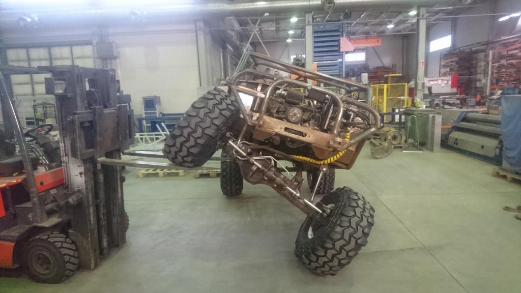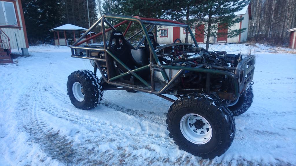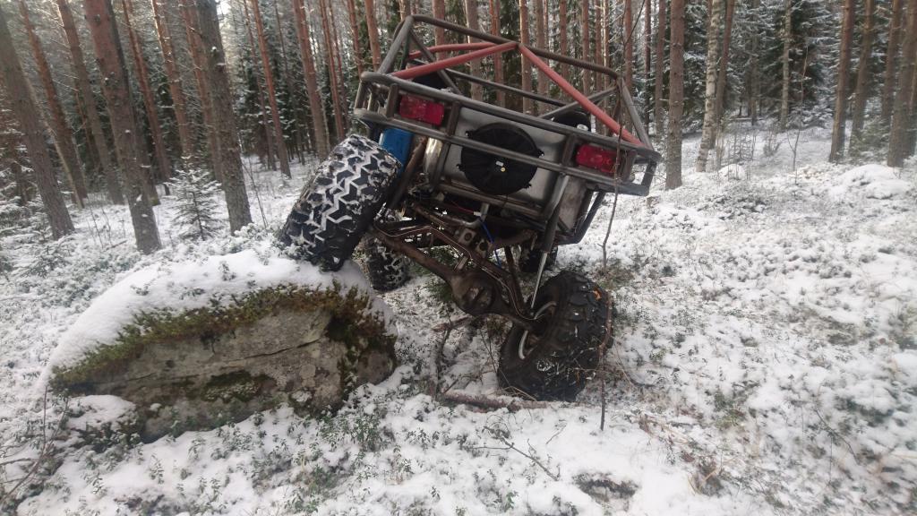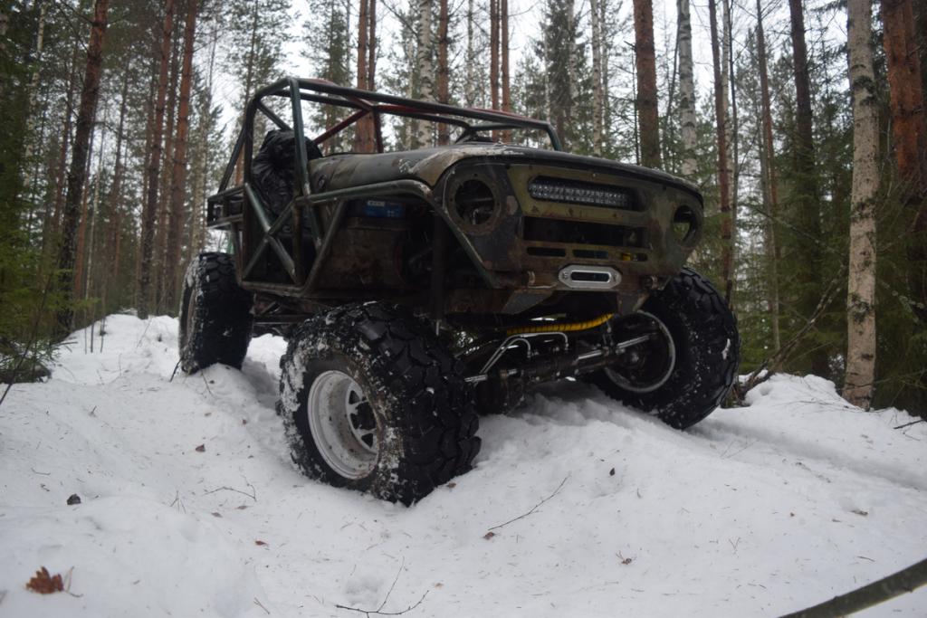 Kun käyntiin littyvät haasteet oli toistaiseksi takanapäin, niin olikin aika tehdä naamataululle pikku kosmeettisia muutoksia. Naamataulussa häiritsi ehkä eniten rungon etummainen poikkipalkki, mitä sitten piti vähän muotoilla. Samalla tuli vähän tukea myös vinssipedillekkin. Palkki poikki ja vähän uutta rautaa tilalle: http://forums.offipalsta.com/picture...ctureid=195342 Vinssikin sujahti paikoilleen kun nyt pääsi pultinreikiin käsiksi. Nyt sitten seuraavaksi työlistalla on etuakselin sisuskalujen asentaminen, jarrujen tekeminen tai ohjauksen letkutusten uudelleenmiettiminen... |