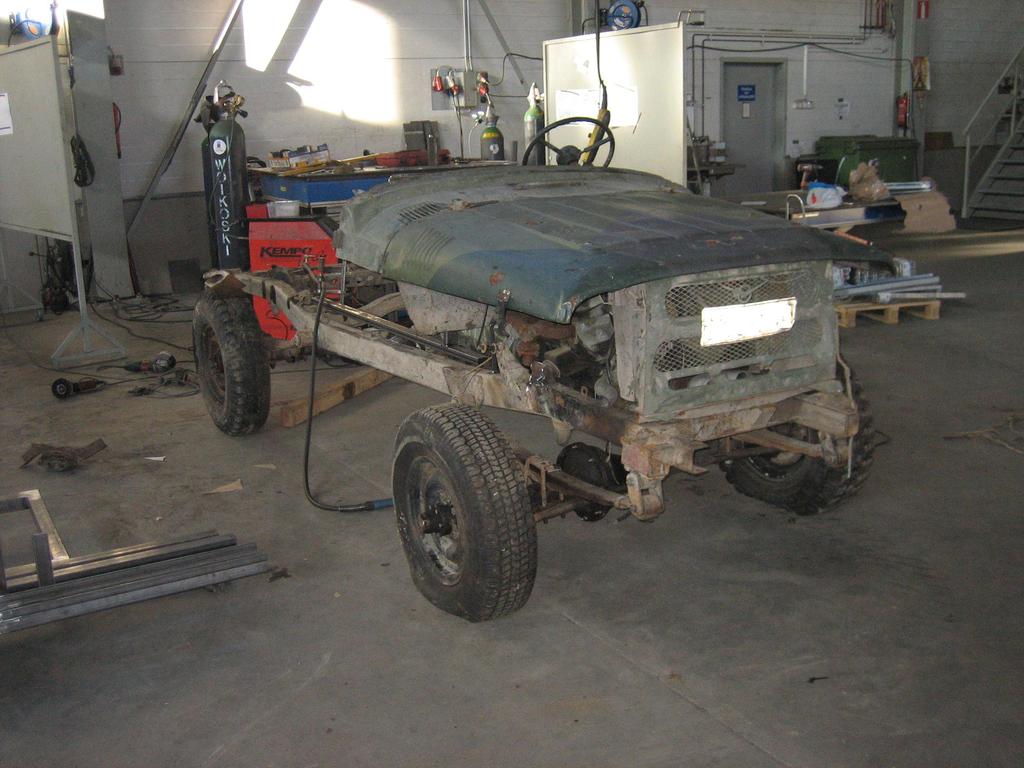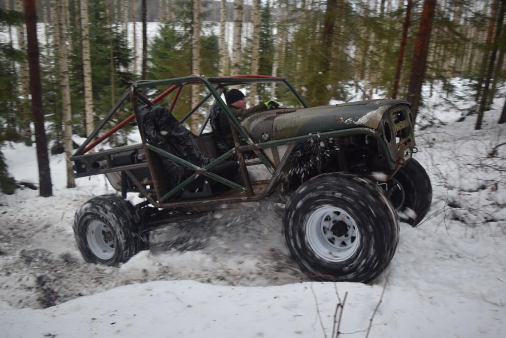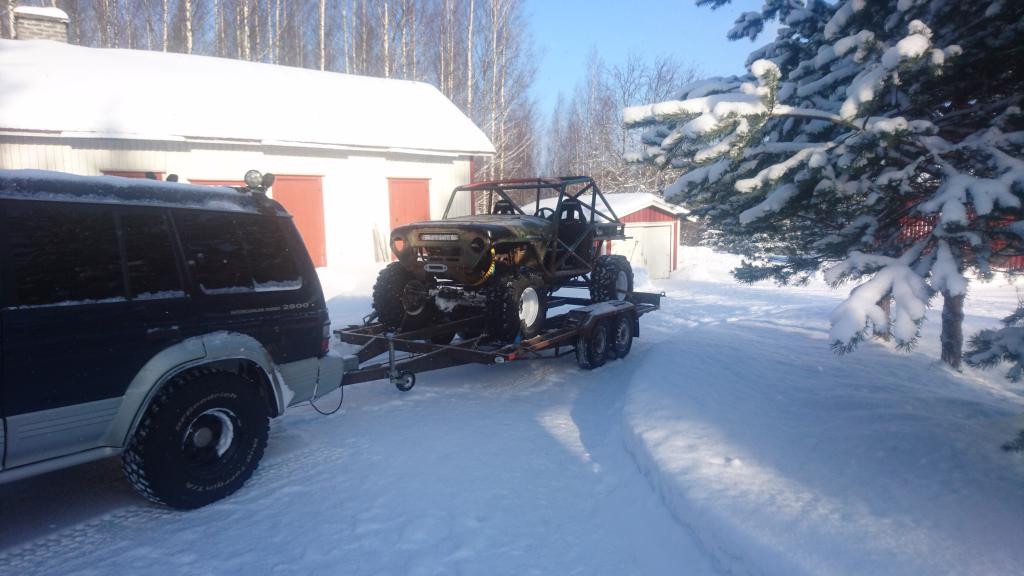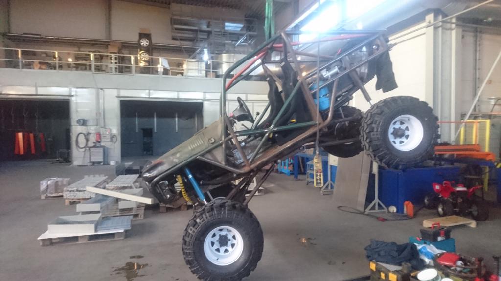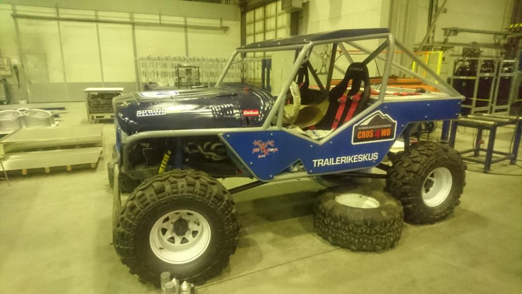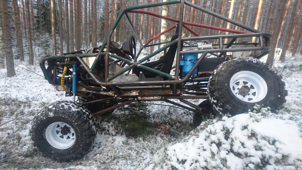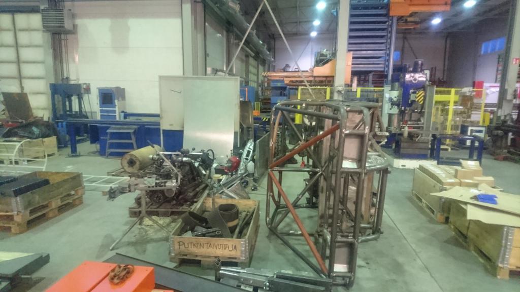 Kun viime vuoden lopussa sain projektin liikkumaan omin voimin, niin kyseltiin alkuvuoden suunnitelmista tämän projektin kohdalla. Hetken joutui selvittelemään mahdollisuuksia vetää homma niinsanotusti loppuun lähempänä kotia kuin se paikka missä tätä on pääasiallisesti tehty. Kun periaatepäätökset saatiin ratkottua, oli aika suorittaa niinsanottu "pura-ja-kokoa" -toimenpide. Se saikin alkunsa siitä, että projekti siirtyi lähemmäksi kotia: https://forums.offipalsta.com/pictur...ctureid=204170 Määränpäässä sitten piti tietysti puntaroida laitos että mitä se painaa: https://forums.offipalsta.com/pictur...ctureid=204171 Ja tottakai viruttelua piti myös harrastaa: https://forums.offipalsta.com/pictur...ctureid=204172 Kyllä sinne pikku kivi mahtuu alle: https://forums.offipalsta.com/pictur...ctureid=204173 Ennen lopullista purkua, piti lisäillä muutama putki häkkiin katolle ja pääkaaren keskelle. Näytti ihan siltä että sellaiset tarvitaan: https://forums.offipalsta.com/pictur...ctureid=204174 Samalla piti lisäillä tuleville koripelleille muutamia korvallisia pitkin putkia: https://forums.offipalsta.com/pictur...ctureid=204175 Oli muuten yllättävän näppäriä tarpeita nuo korvat. Niitä tulikin sitten viljeltyä pitkin poikin häkkiä, esimerkiksi jarruputkien ja sähköjohtojen kiinnityksiin yms. pikku juttuihin. Takakontin kannellekkin muutama korvallinen tuli hitsailtua: https://forums.offipalsta.com/pictur...ctureid=204176 Kuten myös takalasille korvalliset: https://forums.offipalsta.com/pictur...ctureid=204177 Sitten tulikin aika tarkastella myös sellaisia kohtia, mihin ei ollut aiemmin mahdollisuutta päästä käsiksi. Nostovaihe menossa: https://forums.offipalsta.com/pictur...ctureid=204178 Samoiten myös kattopelti ja kauhukahvat piti lisäillä: https://forums.offipalsta.com/pictur...ctureid=204179 Kun kaikki palaset oli saatu irti mitkä olivat pulttiliitoksilla kiinni, niin tuollainen keko niistä sitten muodostui: https://forums.offipalsta.com/pictur...ctureid=204180 Lähti muuten jokainen palikka irti ilman rälläköimistä häkistä irti eikä sähköjäkään tarvinnut poistaa sivuleikkureilla :) Moottori-vaihteistopakettikin nousi pois kokonaisena ilman purkamista. Eniten kuitenkin jännitti rattipylvään kohtalo, että miten se poistuu paikaltansa. Hyvin se kuitenkn erkani paikaltaan. Tämän jälkeen alkoi puhallus ja maalaus. Häkki puhallettuna ja puntaroituna: https://forums.offipalsta.com/pictur...ctureid=204181 https://forums.offipalsta.com/pictur...ctureid=204182 Sitten vaan väriä pintaan: https://forums.offipalsta.com/pictur...ctureid=204183 Suhteellisen vaativa oli häkin maalaus äkkinäiselle, mutta aikaa ja maalia meni riittävästi.... Samalla meni muutama muukin pellinpala väriin. Ensimmäisen viikon saldona projektin purku osiin, häkin viimeistely, varustelu ja maalaus. Talviloma hyvin käytetty. https://forums.offipalsta.com/pictur...ctureid=204184 https://forums.offipalsta.com/pictur...ctureid=204185 Jatkuu hetken kuluttua... |