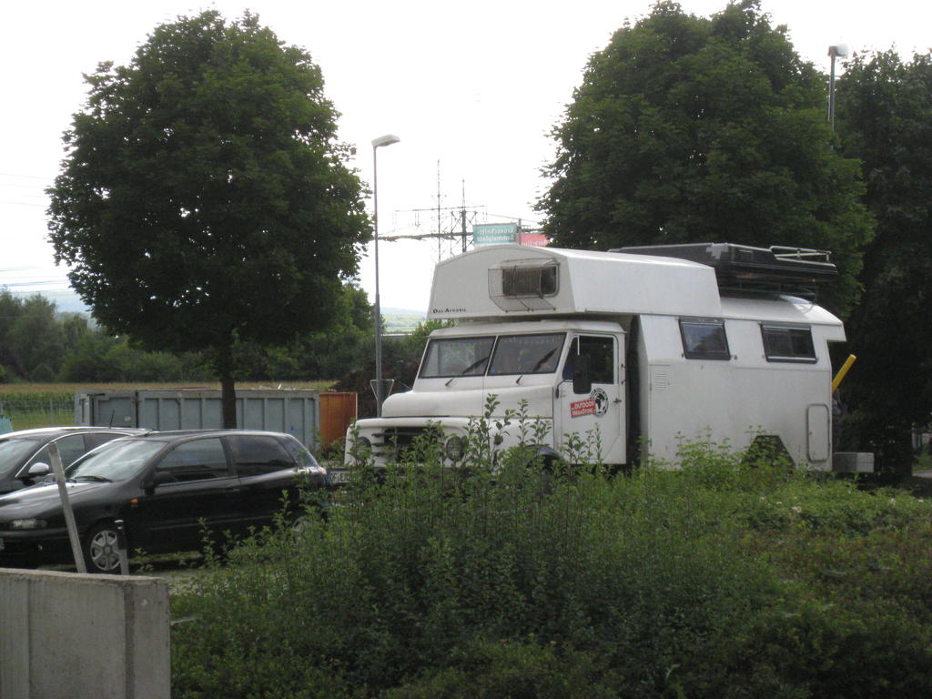 Tälläinen matkailuauto seisoi kadunvarressa parkissa Wienissä. Itävaltalaista tekoa Steyer luki keulamerkissä.