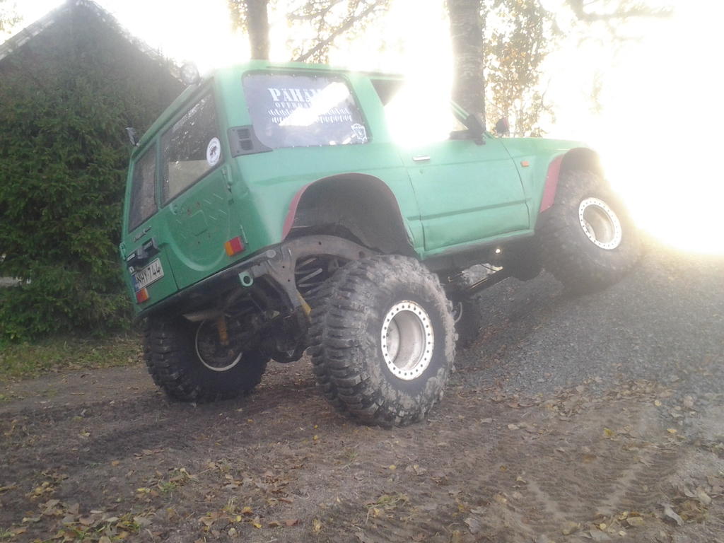 Takaa piti apparin puolen korin kulmaa vielä hieman muokata leikkaa-liimaa menetelmällä ja nyt mahtuu pokkeri olemaan. Ahdasta on ja tarkalle menee mut mahtuu ja se on pää asia :D http://forums.offipalsta.com/picture...ctureid=113320 ja vielä säädin samalla hieman iskareita ja akselin keski rajoitin vaijeria, tuloksena et muutaman lisä sentin sain ulosjoustoa lisää. nyt jo alkaa tuntumaan et ei enää jää iskareista kiinni, puslat tai jouset rajoittaa nyt joustoo mut eiköhän toi jo ala piisaamaan.:rolleyes: http://forums.offipalsta.com/picture...ctureid=113321 Ohjauksen panssaria piti hieman leikellä et kääntyy pyörät tarpeeks linkkuun. Nyt ei enää tarviis tehdä paljoo muuta kuin vinssi saada kuntoon tai laittaa toinen paikoilleen, perus akseleiden öljyn vaihdot ja lisäpenkki pultata takaloosteriin nii ois valmis finland trophyyn. Sit onkii taas kuukaus aikaa korjata nii ois mudventures...:p nyt seisoo töpö taas ryhdissään. http://forums.offipalsta.com/picture...ctureid=113325 |