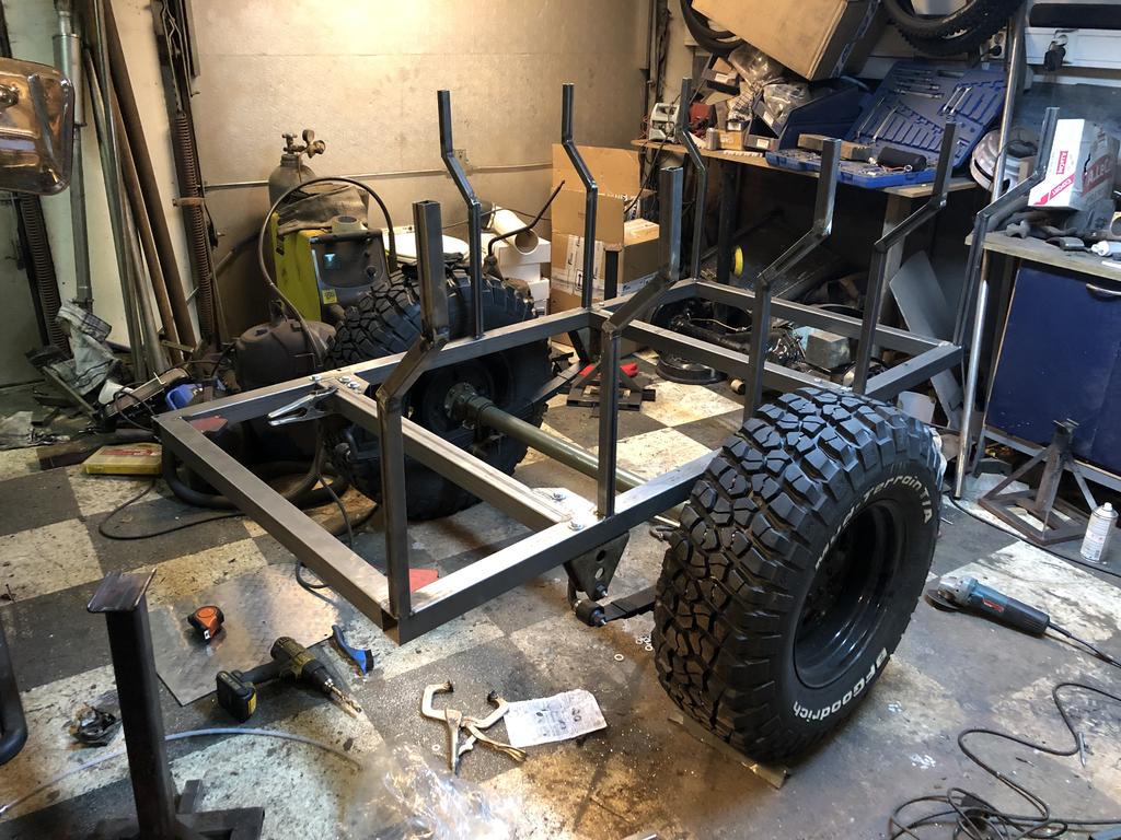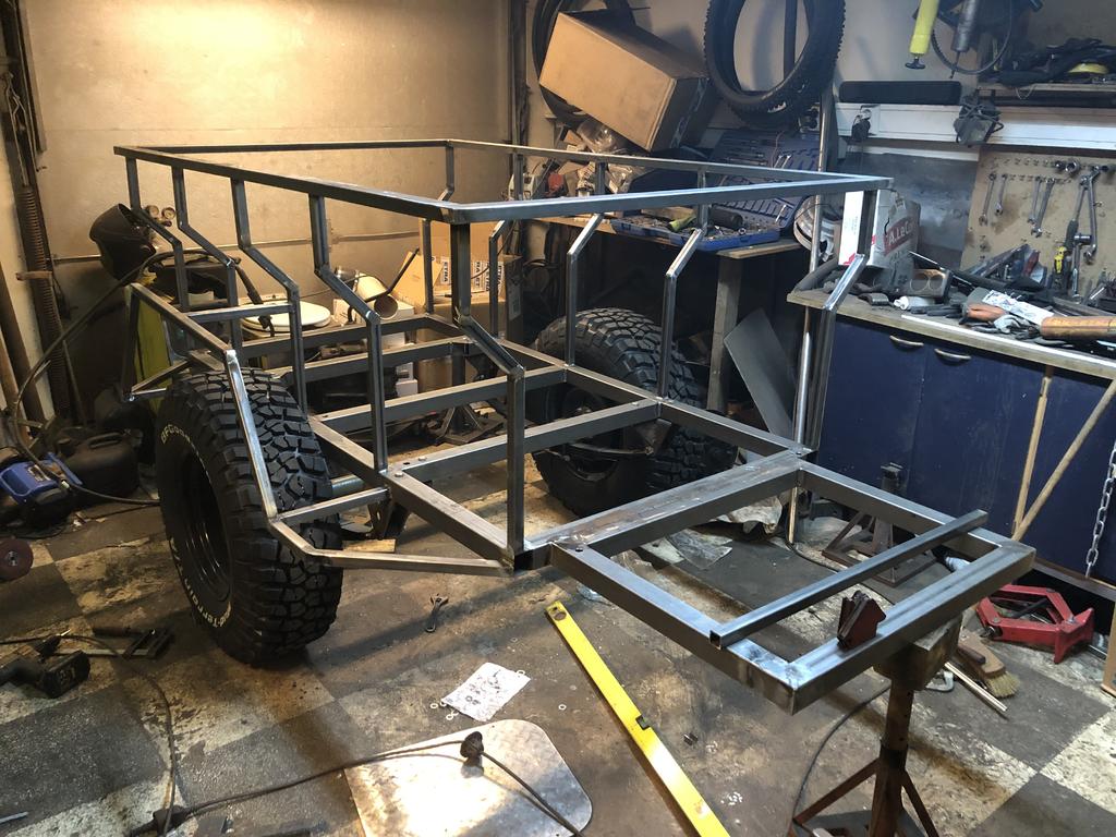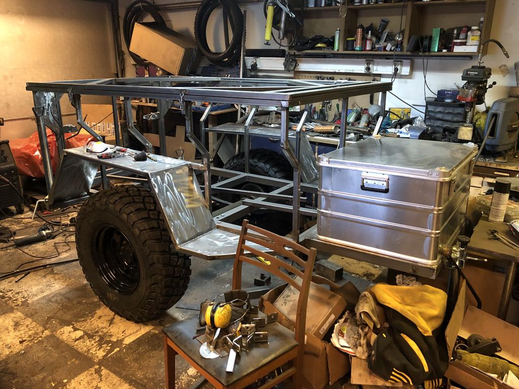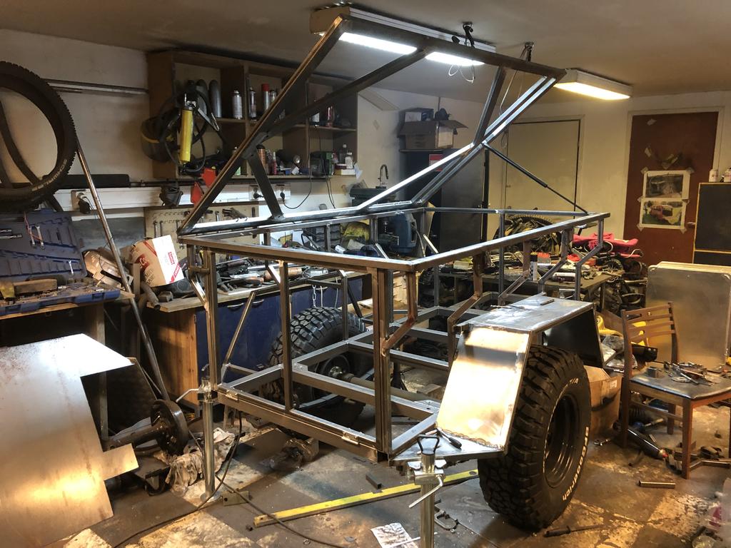 Tuossa alkoi vähän pää jäätymään taisi olla -20 kuitenkin ulkona asteita. https://forums.offipalsta.com/pictur...ctureid=219532 Sekoitetaan mukaan tämmöinen kärryprojekti Ollut pitempään ajatuksena tehdä tommoinen ns. expedition traileri kattoteltalla. Pohjaksi uumoilin Willys mbt kärryä, mutta niiden harvinaisuus ja hinnakkuus kun oli selvitetty niistä luovuttiin. Löysin kuitenkin mbt akselin ja jouset, tai oikeestaan Jeeper löysi. Ei muuta kun intopiukeana hakemaan akselia Mikkelistä, https://forums.offipalsta.com/pictur...ctureid=219533 Pillumehu, huomaa heterolla tavalla miehekäs lippis. ;) Akselin putsailu, putku ja maalaus. https://forums.offipalsta.com/pictur...ctureid=219534 Jarrut laitoin tyhjänä sisään, tässä kärryssä riittää kiilat seisontajarruksi. https://forums.offipalsta.com/pictur...ctureid=219535 Kärryn rengastus olikin jo päätetty, tärkeimmät asiat ensin. https://forums.offipalsta.com/pictur...ctureid=219536 No juu renkaat lainattiin CJ5, mutta samanmoiset lähti tilaukseen. Kärrynhän ei tarvitse iso olla, eli tuolla mitalla mennään. https://forums.offipalsta.com/pictur...ctureid=219537 Juu ei ole tukkikärryn pienoismalli vaikka tässä siltä näyttääkin. https://forums.offipalsta.com/pictur...ctureid=219538 Sitten ilmoitettiinkin, että renkaat valmiit. Nyt tuli oikein KM3 mutikat. Vähän helmiä sioille tuossa kärryssä, mutta on kuulemma hyvät. https://forums.offipalsta.com/pictur...ctureid=219539 Lisää putkea, vielä saa ainakin kolmannen putkenhakukeikan tehdä. https://forums.offipalsta.com/pictur...ctureid=219540 Kaasujousi helpottamaan kannen nostoa. Saapi nähä jaksaako pitää auki kun teltta katolla... https://forums.offipalsta.com/pictur...ctureid=219541 Ledvalot oli jäänyt yli edellisistä projekteistä ja ihmeen kaupalla ne asettui kivasti tuohon kärryn perään. https://forums.offipalsta.com/pictur...ctureid=219542 Tuossahan tuo kaksi viikkoa on hurahtanut kun akselin haettiin. Nyt ollaan tässä vaiheessa. https://forums.offipalsta.com/pictur...ctureid=219543 Muut pellit tilailin valmiiksi leikattuna ja kyljet pokattuna noihin kahteen 45 asteiseen kulmaan. Ne kun saapuu niin voipi alkaa miettiä ruosteenestohommia. |