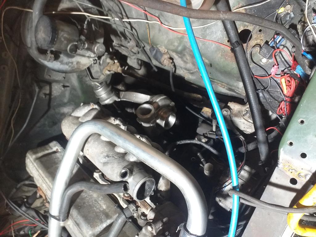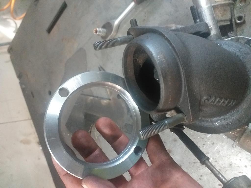 Tänään tuli aloteltua ahdistelua. En jaksanut alata tekemään koko pakosarjaa uutta joten päädyin vähän ryssäläiseen ratkaisuun eli käyrä sarjan jälkeen ja turbo siihen. Projekti alkoi mukavasti kun otin ensimmäistä downpipen mutteria auki ja se leikkas kiinni kesken matkan. Ja tietysti se taain lohkon ja sarjan välissä. Aikani temuttua vedin vingulla peilin kautta mutterin halki. Seuraava pinnapultti katkesikin sitten suoraan. Kolmennesta tuli pinnapultti hienosti pois, jenkoineen päivineen :D