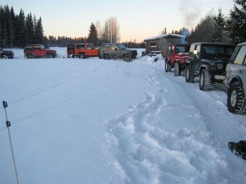Kiitoksia meidänkin puolesta koko porukalle, maanomistajalle ja erityisesti järjestäjä puuhamies Ismoille! Päästiin kotiin vaikka kaksi rengasta ei halunnu oikein pitää ilmaa sisällään, kerran piti pysähtyä matkalla täyttämään. Ja aurauskulmat pitää säätää. Lisäksi polttoainejärjestelmässä jotain pientä häikkää kun ryyppy päällä piti ajella kotiin, muuten ei kunnolla käynnyt ja kytkinkin rupes lämpenee siinä lopun vedossa.