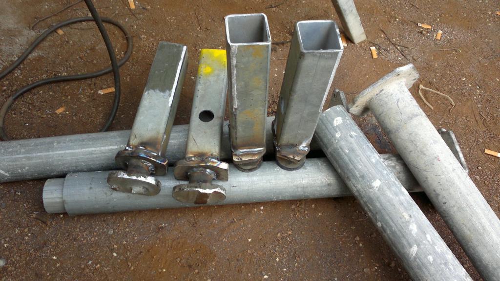 http://forums.offipalsta.com/picture...ctureid=134383 Sitten vielä vähän lisää osien hitsailemista yhteen, niin tuollaisia muotoutui: http://forums.offipalsta.com/picture...ctureid=134384 Vinotuille hitsasis jo pultit jalkoihin kiinni, mutta vielä pitää itse tuet tehdä ja kopin runkoon hitsata vaikka jatkomutterit, mihin saa sitten pultin kierrettyä vinotukea varten. Pitihän nuo osat maalatakin, kun niin paljon leikattuja kohtia ja hitsisaumoja oli, vaikka muuten ovat sinkittyjä. Siispä kutakuinkin auton väreihin nuokin. :) Eihän nyt kiiltäviä osia kehtaa mukana kuskailla, kun noita jalkojahan voi käyttää kopperon tasaamiseenkin... http://forums.offipalsta.com/picture...ctureid=134385 Vielä oisin alkanut lavan laitojen runkoja hitsailla kasaan, mutta huomasin, että ei se onnistu ilman ainakin yhtä oikeaan mittaan sahattua levyä... Enkä sitten viitsinyt enää 23 aikaan alkaa sirkkelöimään pihalla. Kiirehän noiden laitojen kanssa tulee ja penkitkin pitäisi lavalle ehtiä tehdä. Joskus talvella jo lupasin, että kaverin häissä voin häävieraita tuolla kuskata. Onhan niihin aikaa vielä kolmisen viikkoa, mutta mahdollisuuksia rakennella on ehkä pari iltaa. Miksiköhän aina kaikki menee niin viimetinkaan?! |
