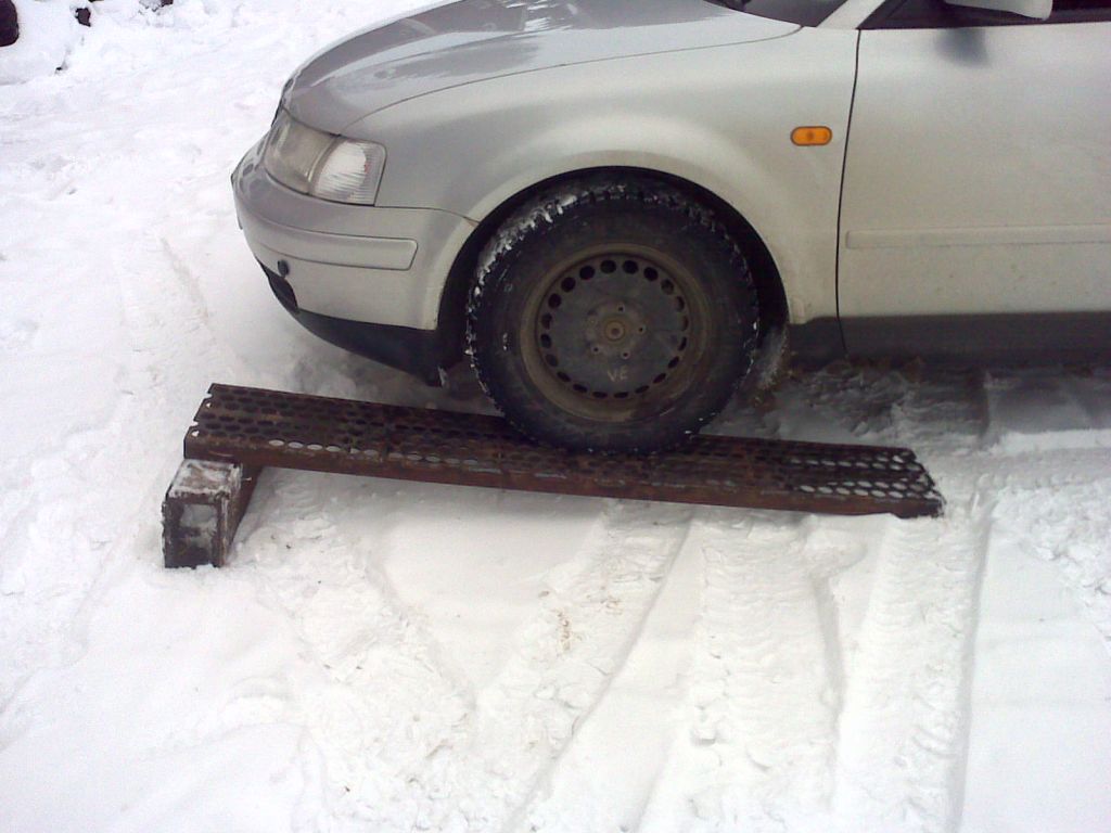 Voishan sitä kokeilla ramppeja minkä päälle auton ajaa ensin ja sit kopin jalat maahan ja auto alta pois ja ne rampithan vois olla sellaiset kaksi osaiset mistä saa sen viisteen irti niin tippuu melkein heti maahan