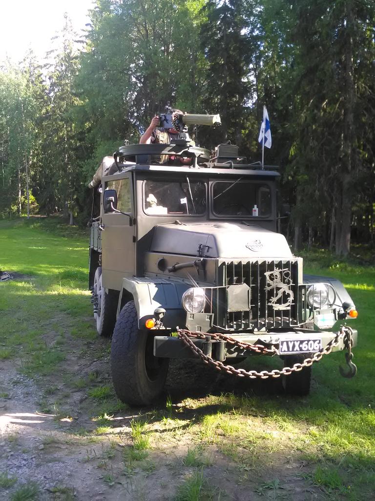 Asiaa on tiedusteltu Sisulta, Tikkurilan maalilinjalta (<-- siis Teknokselta kysytty..!!!), vakava henkisiltä armeija-ajoneuvo harrastajilta, jne... Vielä ei ole saatu varmistusta, että mikä on ollut auton alkuperäinen väritys. Tämä on siis 1973 mallinen peli, ja nykyinen kolmen värin maasto maalaus on tehty siihen vuonna 1982. Jos jollain on tietoa, että minkä värisiä maasto-sisut olivat vuosina 1964-1982, niin laittakaa ihmeessä viestiä. http://forums.offipalsta.com/picture...ctureid=194991 Mutta on sitä tullut ulkoilutettua sentään. Kuvassa toukokuussa Kalkun huutokaupassa, mikä on eräänlainen epävirallinen armeija-ajoneuvo kokoontumisajo. http://forums.offipalsta.com/picture...ctureid=194992 Heinäkuu, Jämi Fly In tapahtuma. Ajoneuvoja oli paikalla lauantaina meidät mukaan lukien 6 kpl, sunnuntaina puolet vähemmän. (Jakolaatikon ja etunapojen öljyt vaihdettu, tuskin ketään kiinnostaa, mutta onpahan itsellä muistissa?) http://forums.offipalsta.com/picture...ctureid=194993 Apupoika Antero, pienessä kaljassa keksitty juttu. Jalkapallo, Neuvostoliittolainen kaasunaamari, ja Bulgarialainen kypärä. Koko homma on viritetty "rekka-valon" varaan. http://forums.offipalsta.com/picture...ctureid=194994 Sunnuntaina Jämillä esiinty Hevisaurus. Meillä oli lavalla noin 30 lasta katsomassa esitystä. Muutaman ensimmäisen lapsen vanhempi kysyi, että saako tulla lavalle. Seuraavat 25 eivät kyselleet mitään. ;) Kuva on peräisin netistä, siinä näkyy allekirjoittaneen M62 kuosiin puettu leveä selkä :D Ajoneuvoja ei Jämillä ollut montaa, mutta monen miehen kanssa tuli juteltua Proto-Sisuista. On se vaan sellainen peli, että se on jättänyt ikuisen muiston sadoille tuhansille varusmiehille. |