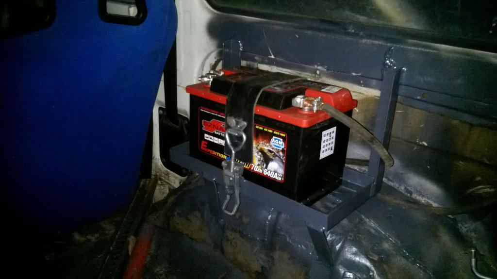 Startti pyöritti heikosti pakkasella. Hommasin toisen samanlaisen Agm akun ja sille hitsuutin telineen takalokasuojan päälle.