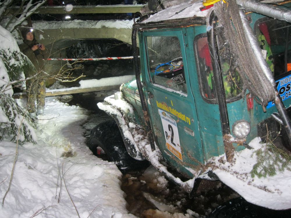 Eli suuret kiitokset järjestäjille, kanssakilpailijoille ja maanomistajille hienosti järjestetystä ja haastavasta kisasta. Jälleen erilainen talvikisa: lumista ja talvista ja alla sula maa ja märkää! Me tultiin maaliin tällä kertaa hieman totuttua aikaisemmin, kun kisakiisselistä hajosi ohjaussimpukka. Mutta oikeasti ei kyllä yhtään harmittanut olla kotona jo aikaisin sunnuntaiaamuna :D Pari kuvaa: 99 pisteen rastille saavuttiin onneksi yhtäaikaa Vitikaisen kanssa, niinpä yhdistettiin resurssit ja kolmen rampin taktiikalla saatiin kohtuullisen helposti autot rastille. Pikkuisen rupesi nousemaan vettä jään päälle Volvon ylittäessä monttua. http://forums.offipalsta.com/picture...ictureid=99989 http://forums.offipalsta.com/picture...ictureid=99990 Iso kuusi oli hauska ja aika helppo nakki :) Vaikeinta oli saada apina puuhun kun auto oli saatu paikoilleen, tuota liukasta pressukattoa pitkin ei päässyt ja kyljetkin olivat aika jyrkät: http://forums.offipalsta.com/picture...ictureid=99991 onko riittävästi käsiä rastissa ja autossa? http://forums.offipalsta.com/picture...ictureid=99992 Ja minulta henkilökohtaiset, valtavan suuret kiitokset hauskasta yllätyksestä: http://forums.offipalsta.com/picture...ictureid=99988 K I I T O S !!! :) Helskutti kun unohin tärkeimmän: kaikkein megasuurimmat kiitokset meidän überhuollolle eli Petelle, Nikolle, Tuulille ja muille Karkkosille jotka mahdollistitte jälleen kerran mukavimman mahdollisen reissun. Teidän ruuat rocks! |