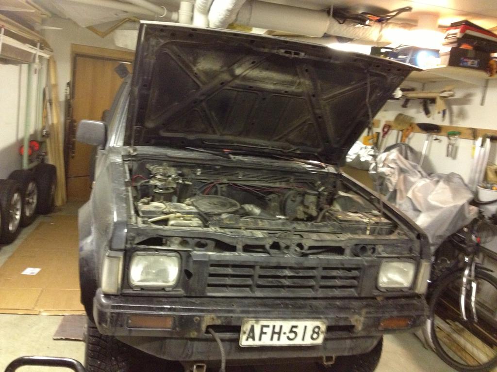Noh karjarautaa irti repiessä totesin että jaah, orkkispuskin on toisesta päästä irti. No ajattelin tietenkin aluksi että se on vain pultti joka on irronnut, paskan marjat. Kun se kyläsepän kulli on tuota koria nostellu ja siinä samassa puskinta niin oli sitten se puskimen nosto toteutettu sellasilla millisestä pellistä leikatuilla kolmioilla jotka kiinni kahella wronic ruuvilla. Toinen noista pelleistä oli haljennut poikki. Tähän tyyliin: http://forums.offipalsta.com/picture...ctureid=121402 No tuo nyt korjattiin sitten pulttaamalla alkuperäinen kiinnike runkoon ja saatiin puskuri pysymään matkassa. Pitää purkaa koko puskin pois ja tehdä paksummasta tavarasta kunnolliset korvakkeet. No se alkuperäinen lisävalojen asennus sitten siirtyi, mutta kun kerta olin ne ajatellut laittaa niin kyllähän ne tuli laiteltua. Ensin kuva ilman karjarautaa: http://forums.offipalsta.com/picture...ctureid=121400 Sitten valot laiteltu: http://forums.offipalsta.com/picture...ctureid=121405 http://forums.offipalsta.com/picture...ctureid=121407 Tuli samalla heitettyä paikoilleen bilteman valojen releytys sarja ja nait preikkerit ajovaloihin, nut nakee! Albumista löytyy viellä muutama kuvatus kyläsepän hitsaus taidoista. Huomenna täytyy mennä jatkamaan, sais sisälle laitettua vähän poppeja ja johdotettua nuita kojetaulun kytkimiä. |