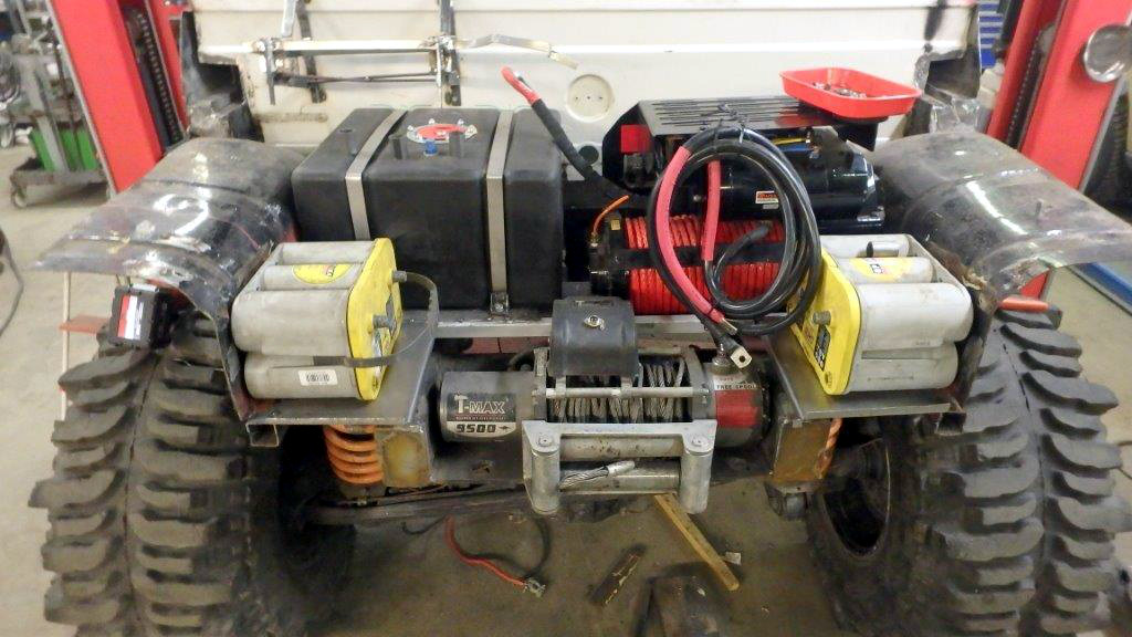 Puuhasteltu ollaan ja jotain valmistakin on syntynyt. Kaikkia näpertelyjä ei kuitenkaan viitsitä raportoida eikä paljoakaan näkyvää olla saatu aikaiseksi. Pari juttua - etuvinssi sijoitettu taakse ja koitettu mahdollistaa veteen ajaminen. Näiden kanssa on aikaa vierähtänyt paljon! Kaiken maailman letkuja, putkia ja johtoja on siirrelty, poisteltu ja rakenneltu uusiksi. Hitsaushommiakin on riittänyt liki kyllästymiseen asti. Saapa nähdä toimiiko tämä laitos vielä joskus.