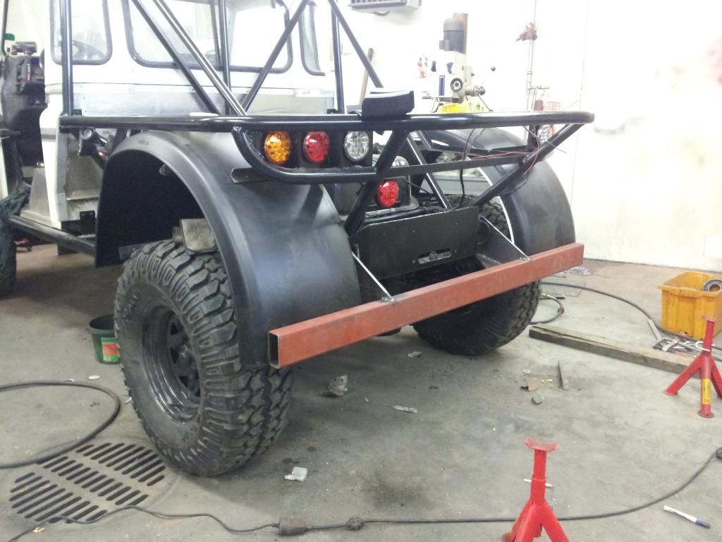 http://forums.offipalsta.com/picture...ctureid=150302 Takapuskuriin tulee vielä USA mallinen pikakiinnitteinen vetokoukku. http://forums.offipalsta.com/picture...ctureid=150301 Kiinnitys 3x10mm ja 2X12mm pulteilla. http://forums.offipalsta.com/picture...ctureid=150300 Lokasuojana Parlok täyspitkänä kun palkki on paikallaan ja lyhyempänä kun palkki on pois. http://forums.offipalsta.com/picture...ctureid=150299 Kyllä puskurikin on hieno mutta hiukan se rajoittaa maastokäyttöä. |