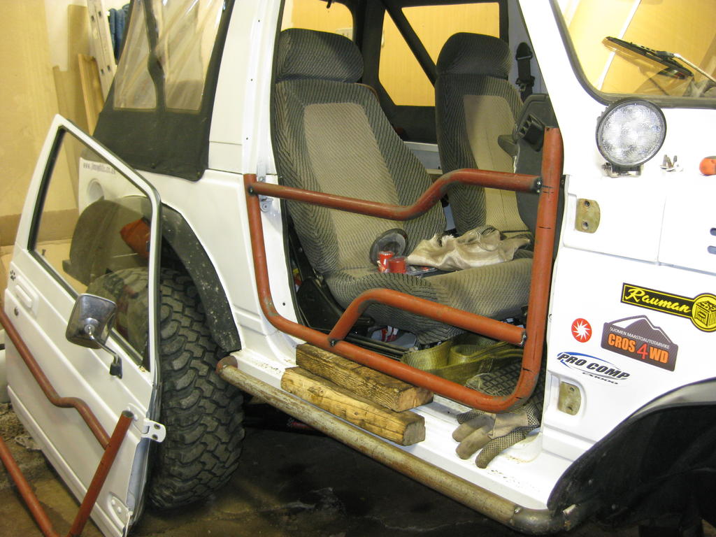 Ei oo helppoo ei. No jotain piti puuhia kun ei pääkaariaihiota ollu ku yks kanki. Putkiovia kun saa hitsata ja taivuttaa miten lystää niin aihiot tuli nysvättyä. Lukitusmekanismi ja saranointi niihin tarttee seuraavaks. http://forums.offipalsta.com/picture...ctureid=103349 |