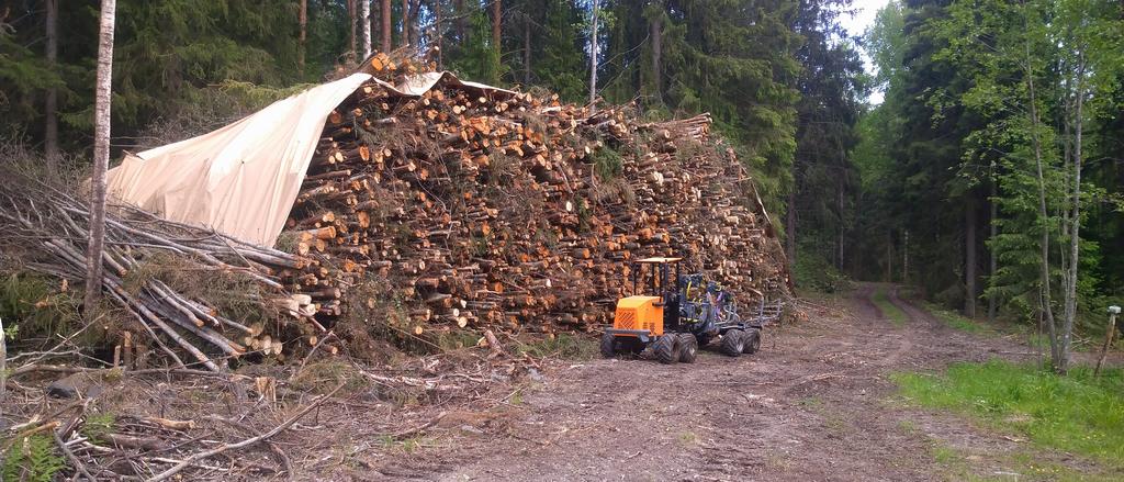 Viimeiset hankintapuut ajettu pinoon odottamaan jatkokuljetusta tehtaalle. |