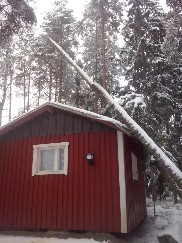 Auton ajoin oletettuun kaato suuntaan tarpeeksi kauas. Puuhun kävin kiikkumassa köyden pään johonkin neljään metriin ja toisen pään laitoin ketjuuun ja sen laitoin sitten vetokoukkuun kiinni. Autolla vedin narun aavistuksen tiukalle. Sitten vetasin Huskun tulille ja sahasin ensin kaatokolon kaajettavalle puolelle ja sitten sahasin toiselta puolelta melkein puun poikki, mutta kuitenkin silleen, että puu pysyi ittestään pystyssä. Sitten hyppäsin autoon ja pikkupuolella lähdin nätisti vetämään puuta nurin. No sittenpä se puu jysähti tonttiin ja vieläpä oikeaan kohtaankin. Ruottalaisista poiketen en saanut mitään rikki pihapiiristä vaikka tarjolla olisi ollut pari rakennusta, kaksi autoa ja yksi sähkölinja. Latvan vieressä oli orava hieman hölmönä ku se oli vissinkin ollut puussa kaadon aikana, mutta kyllä se siitä reippaana lähti liikkeelle. Karsin oksat ja pätkin rungot. Siinäpä se. Tämähän on sitten semmosta amatöörin puuhastelua, että näillä opeilla ei kannate lähteä puuta kaatamaan jos ei varmasti tiedä mitä on tekemässä. Mutta tällä tyylillä olen joskus ennenkin saanut puun hallitusti nurin. |