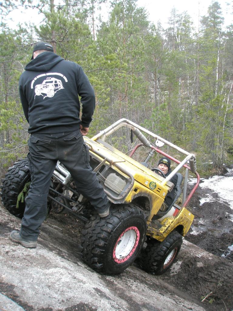 Vähän mua jännitti miten oon onnistunu kaikissa järjestelyissä mutta hienosti meni. Parkkialue oli onneks kuivanu,rata osoittautus ihan hyväks eli jokaselle jotain, nuotiopaikka hyvä,suot pahus oli vähän jäässä mut aikataulu meni juur niinku piti ja ennen kaikkea toi kaverin auto toimis parin seisantavuoden jälkeen hyvin ja sain vedettyä letkaa loppuun asti. Jopa meidän äiti oli niin innoissaan kyseisestä tapahtumasta että seuras letkaa loppuun asti. Myös naapurit kehus hienoja autoja ja olivat innoissaan kattomassa mistä mennään. Ja kun pienessä kylässä huhu leviää että jotain erikoista tapahtuu niin tullaan vaikka taksilla kattomaan, ainoo tosi pikku miinus oli etta nää kaks sankaria olis voinu viedä ne tyhjät pullot mennessään sieltä mettästä, mutta muutenhan tuo kaksikko käyttäytys ihan hyvin eikä ollu kenenkään edessä. No nyt on rata avattu ja todettu ihan kelvolliseksi,muutama paikka tosin tais olla isoille autoille vähän ahdas ja joutus vekslaamaan mutta pientä parantelua ja jossain vaiheessa kesällä mennään uudestaan kattomaan joko olis suokuopat syventyny. Radan lopussa mistä noustiin ylös suon reunasta on jatkoa,eli mennään vielä kerran alas ja siellä on yks hyvä mutaränni,mut en ehtiny sitä vielä karsimaan eli seuraavalla kerralla ajetaan sekin. Ja jos liian ykstoikkoseks menee niin ajetaan rata toiseen suuntaan niin taas on uudet haasteet. Ja näillänäkymin kaikki perikuntalaiset eli maanomistajat olivat erittäin tyytyväisiä ajoiohin,porukan käytökseen ja siisteyteen, eli varmasti saadaan mennä muidenkin ku mun puolesta uudestaan |