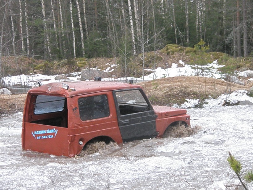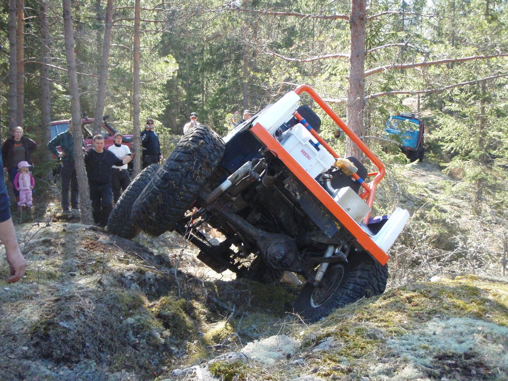 Allekirjoittanut Suzuki kuljettaja sai huvittaa kanssa-autoilijoita kyseisellä kallistusmanööverilla. Apukuski raapii vieläkin kuraa kalsareista... ;)