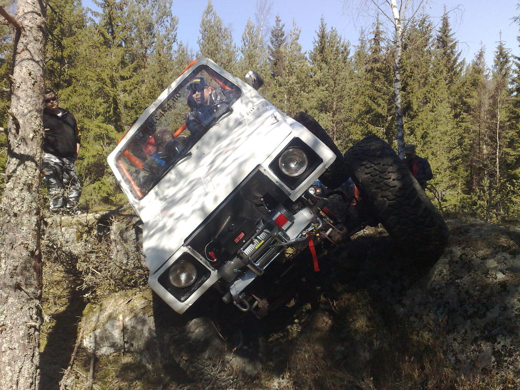 Joo aika nopeasti toi tuli hommattua. Autoa ettiessä ei kyllä tullu mieleen alkuunkaan ostaa uazia, mutta nettiauton kautta yks mies soitti et tuu kattomaan ja päätät sitte ostatko.Sieltä se sitten vaan siirtokilvillä lähti mukaan:D Pöntössä kun istutaan etuakselin päällä ni meno on ku vuoristoradassa, mutta sata kertaa hauskempaa. Toi laite on sillä 2.4 L neloskoneella eli n. 92hv.Autoon on asennettu 24 Voltin järjestelmä valoille ja vinssille, 12 Voltin lisäksi. Mutamieheen viitaten sillä on edellinen omistaja saunonut, mutta oli jo myynyt tarvittavan kiukaan. :D Napalukot edessä kytkettävällä etusillalla ja normaali alennusvaihde. Joustoa sais olla enemmän,kun on aika jäykät pakat mut kokeillaan mennä vielä näillä. Ei varmaan pahimpiin paikkoihin pääse ,mut on se laite jo pari kertaa yllättäny :D |