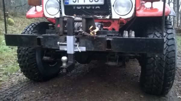 Mulla oli hiluxissa ensin tälläi niin oli useemman kerran etupyörät ilmassa kun terä haukkas.. ei ollu mitään laukasuakaan.. Pudotin aisaa jotain 10-15senttiä alemmas niin rauhottu kummasti. Pajerossa oli aluks tuo sama aurapuskuri, mutta myöhemmin tuli pitkällä aisalla taka-akselin etupuolelta rungosta.