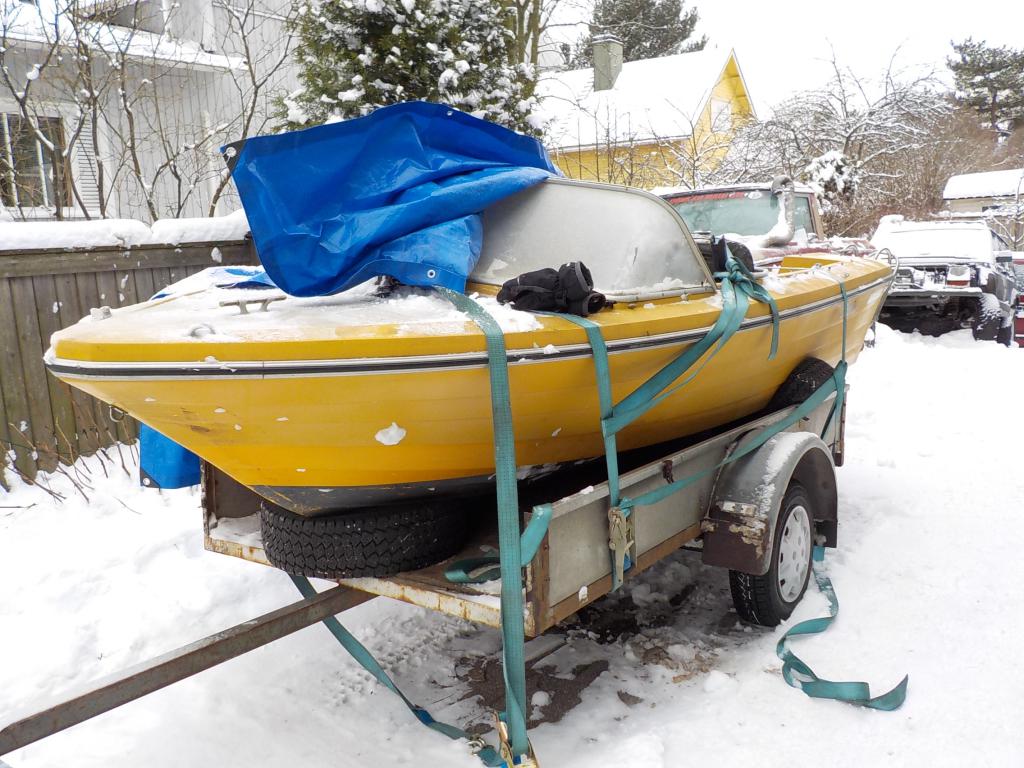 Sinne jäi Terhi talvehtimaan kolmen veneenmitan päähän Kouvolan Pyhäjärvestä peiteltynä, vakuutettuna ja ketjulla koivuun lukittuna.