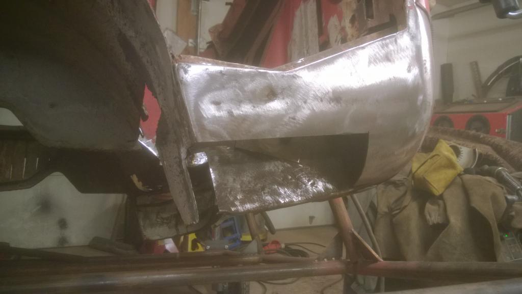 tämäkin rupee taas eteneen pikku hiljaa... Bensapumppu tuli kasattua takas paikoilleen mutta ei tunnu pelaavan, ei ilmeisesti pääse kalvo tarpeeks liikkumaan kun pumppaa jotekin hengettömästi eikä nosta bensaa välillä ollenkaan :( Pitää tuota vielä ihmetellä jossain vaiheessa tai sitten tilaan vain uuden mekaanisen ameriikasta tilalle... Tänään ehdin vihdoin tuon korin pariin, vänkärin jalkotila ja etukulma ei ole ihan niin paha kuin kuskinpuolen niin päätin alotella siitä ruosteita vähentelemään. Aikansa kun leikkeli niin ainakin tuon verran menee vaihtoon: Liite 55335Liite 55336Liite 55337Liite 55338Liite 55339Liite 55340 Ajatus oli että jos isoimmat reiät paikkailis ennenkuin vie korin puhallukseen niin pysyy paremmin nipussa ja kaikki ilmiselvät paikat olis sitten jo hoidettu tuossa vaiheessa. Kauhean parin tunnin näperryksen lopputulemana etukulman sisäiset tukirakenteet ja pintapellit olis nyt vaihdettuna, tallissa on reilusti tuota 2mm levyä ylimääräisenä niin siitä tuli jopa pintapellit askarreltua. Eipä ihan heti ruostu läpi :D Ei tuo hirveesti tuosta ameriikan pellistä poikkea, mauserilla mitattuna vanha oli luokkaa 1,8mm? Minusta tuosta tuli ihan hyvä, hieman oli haastavampi saada tuon paksuinen pelti tuohon muotoon mutta en usko että tuohon kovin montaa grammaa kittiä tarttee. Liite 55341Liite 55342 Huomenna jos sais tuon vänkärin lattian ainakin heppailtua nippuun ja sais tuon jalkotilan huoltoluukunkin suunniteltua niin siitä sitten seuraavan paikan kimppuun... Ruostehommia riittää vähäksi aikaa :D |