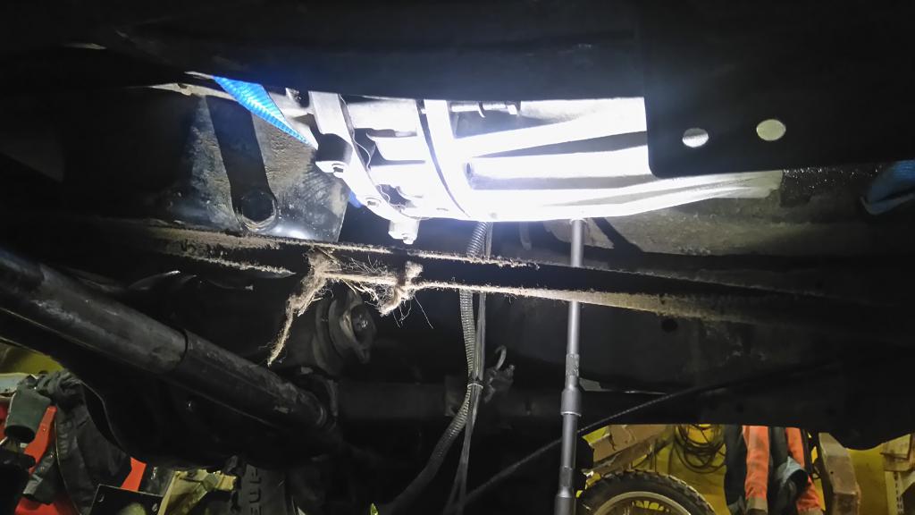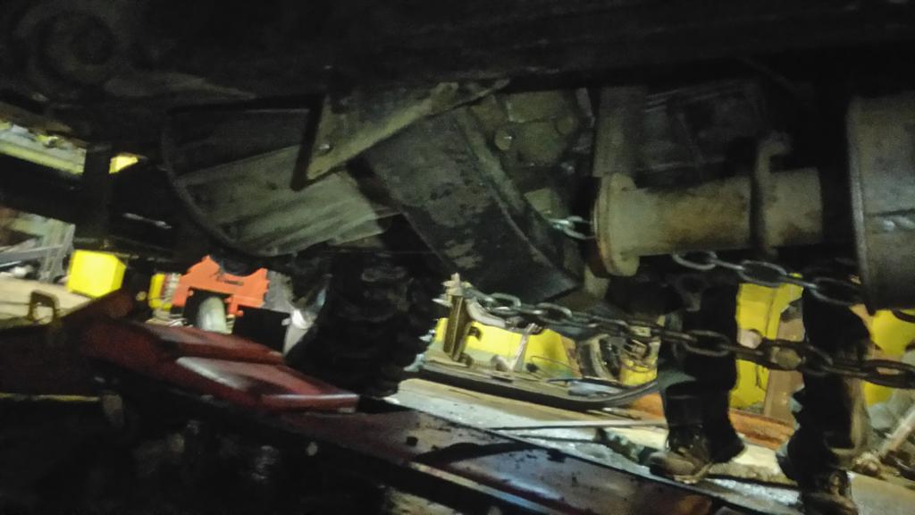 Niin, eikös se ole vielä takapäästä kiinni siellä rukopalkeissa, ellet niitä pultteja jo ole ottanut pois?