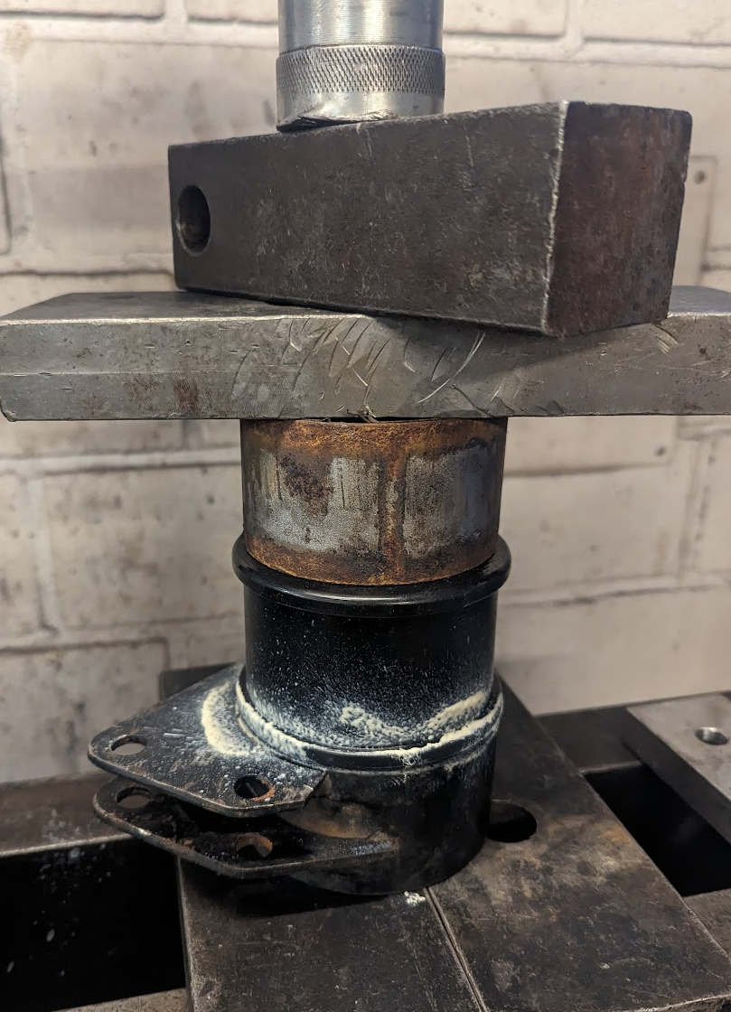https://forums.offipalsta.com/attach...1&d=1713124024 Tyhjään pesään sopii Prothane 1-504-BL uretaanipuslat, vaan niistä pitää ottaa keskellä oleva metallitappi pois että mahtuu. https://forums.offipalsta.com/attach...1&d=1713124024 Pari kolme kertaa piti yrittää prässin kanssa ennen kuin oikea tyyli löytyi. Litiumrasvaa väliin ja painetta tasaisesti puslan laidoille. https://forums.offipalsta.com/attach...1&d=1713124024 Puslalle tilaa mennä renkaasta läpi https://forums.offipalsta.com/attach...1&d=1713124024 Valmis tuote paikalleen punnerrettavaksi. Olisi kannattanut tehdä viisteet keskitappiin että pultti menisi helpommin paikalleen :rolleyes: https://forums.offipalsta.com/attach...1&d=1713124024 Jostain syystä näiden paikalleen saaminen on aina taistelu. Apukuskin puoli ensin paikalleen, sitten kuskin puoli vääntöraudan kanssa. En huomannut ylimääräisiä tärinöitä, mutta kone tuntuu nyt pysyvän paremmin paikallaan kiihdyttäessä. |