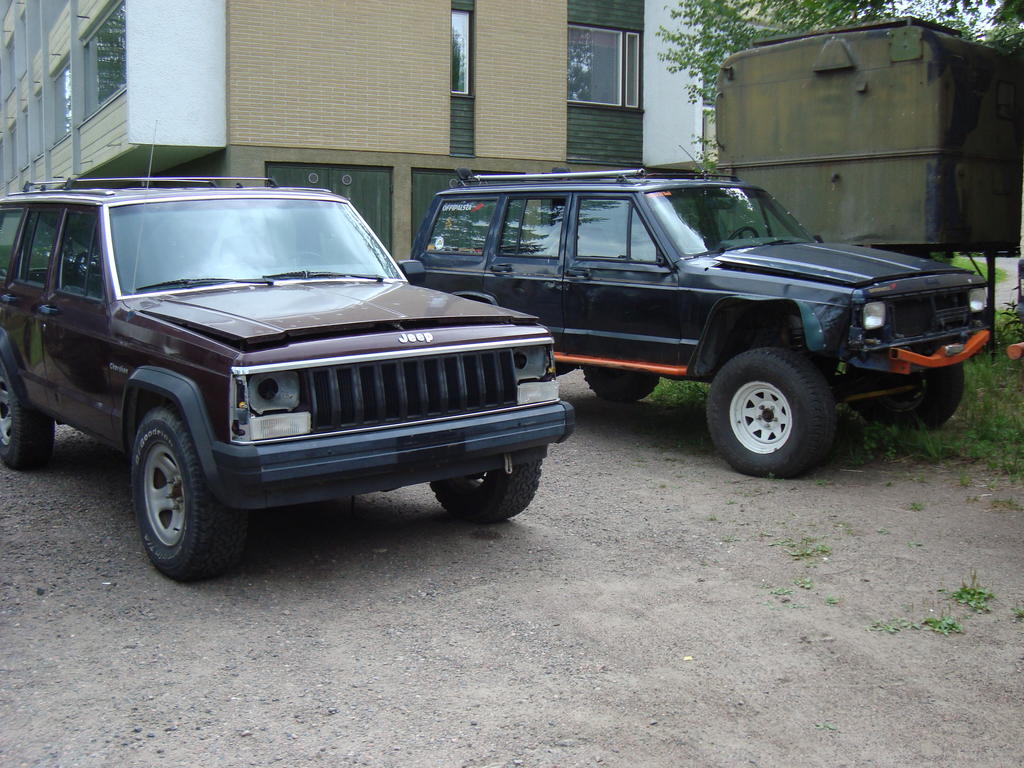 Ensimmäinen oma 4x4 oli Mazda B2600 31" renkailla, mutta sen rungon ruostevauriot ei innostaneet ja leiman loputtua auto myytiin eteenpäin. Olin jo aikaisemminkin haaveillut XJ Cherokeesta ja sellainen tuli haettua Kempeleeltä reilu vuosi sitten. Ohessa kuva vakiokuntoisesta Jeepistä Mazdan rinnalla sekä kuva Jeepin nykykunnosta. Lisää kuvia löytyy: http://kuvablogi.com/blog/9368/11/ |