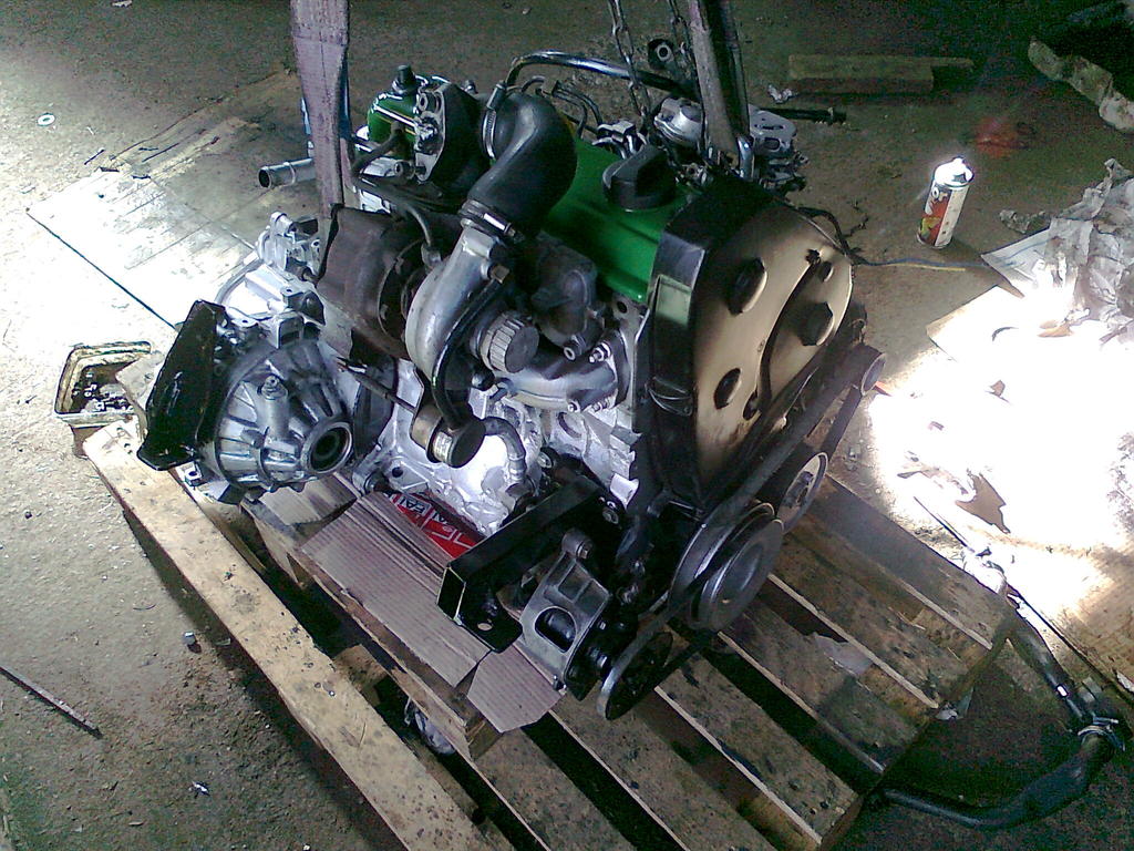 Nyt on jo käyty vähän ajelemas ja testailtu muutenkin. Aluksi ei meinattu saada konetta käymään kunnolla millään ja tuprutti vaan valkoista savua putkesta eikä kulkenut mihinkään. Oli syöttöpumppu käännetty ihan myöhäselle, sen kun laittoi puoleen väliin niin rupes toimimaan ja tehookin ihan kivasti. Kytkinsylinteri piti vie vaihtaa volkkarin omaan kun ei corollan toiminut.