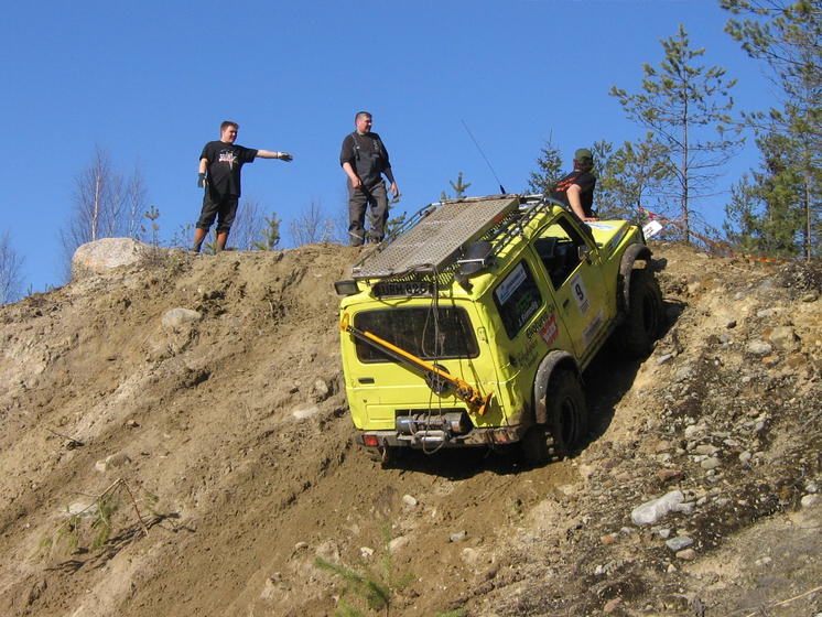 Olivatpa hienon sään tilanneet järjestäjät eiliselle kisalle, ei olisi voinut parempi olla! Suuret kiitokset kaikille järjestämiseen osallistuneille, maanomistajille ja tietysti kanssakilpailijoille. Meillä oli vähän tavallisuudesta poikkeava miehitys, kun KooPee ja Jouni eivät päässeet mukaan. Houkuttelin mukaan siskoni joka on kyllä tainnut joskus käydä katsomassa pari trialkilpailua mutta muuten ei ole juurikaan maasturissa istuskellut. Leena otti homman omakseen ja suunnisti parin tunnin kuluttua kuin vanha tekijä :)