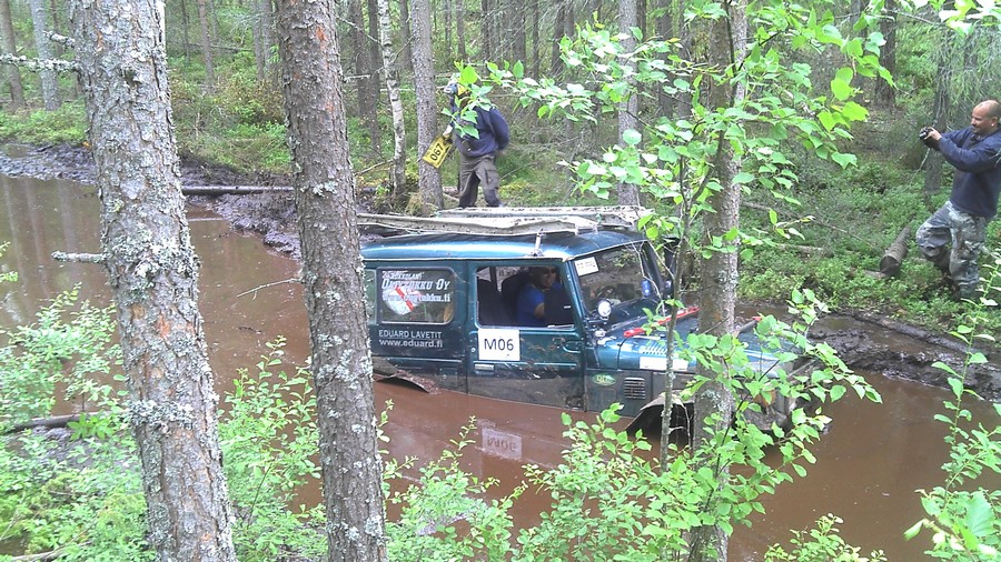 Kiitokset kisajärjestäjille ja kanssakilpailijoille Team Offipalsta.COMin puolesta. Meidän kisa meni penkin alle lähinnä lämpöongelmien vuoksi. Mutavelli rikkoi lauantaina flektin ja sunnuntaina varaflektin, joten ajaminen oli aika hankalaa. Tuollainen Jeepin kuutonen ja automaatti tuottaa lämpöä aika railakkaasti, joten konehuoneessa oli pieniä tulipalojakin. Kateeksi käy niitä jotka on nostaneet jäähdyttimen auton takaosaan.