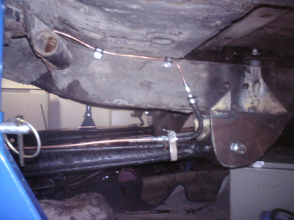 Nyt olis etupään jarru putket vedetty olis takapäänkin tehnyt mutta kun edelleen oli vääriä muhveja tohon jarrupaineen säätimeen prkl.. Nyt oli muuten oikee eli ei ollut koko matkaa kierrettä mutta oli liian lyhyt..