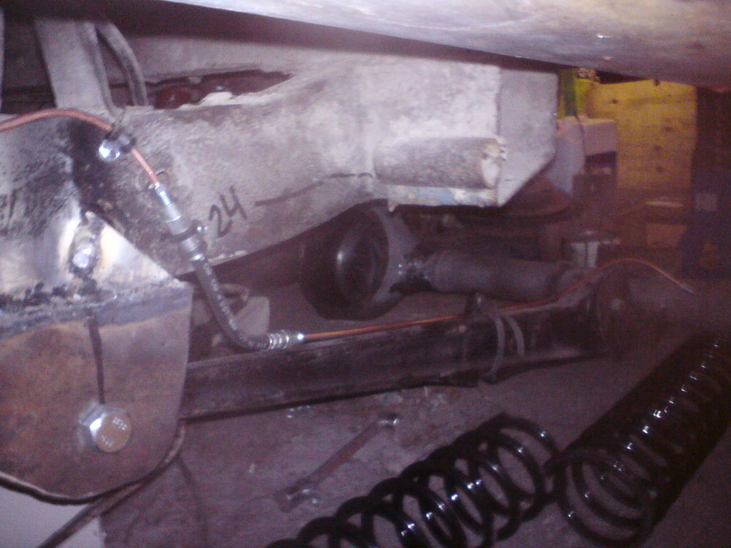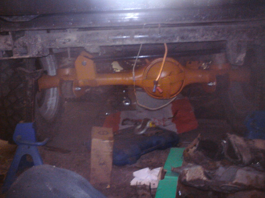 Etu panhardi heppailtu paikoillee, meinas olla hiukka ahdasta, mutta eiklhän se sinne sovi. Huomenna yritän saada akselit maalaus kuntoon ja maalattua :)