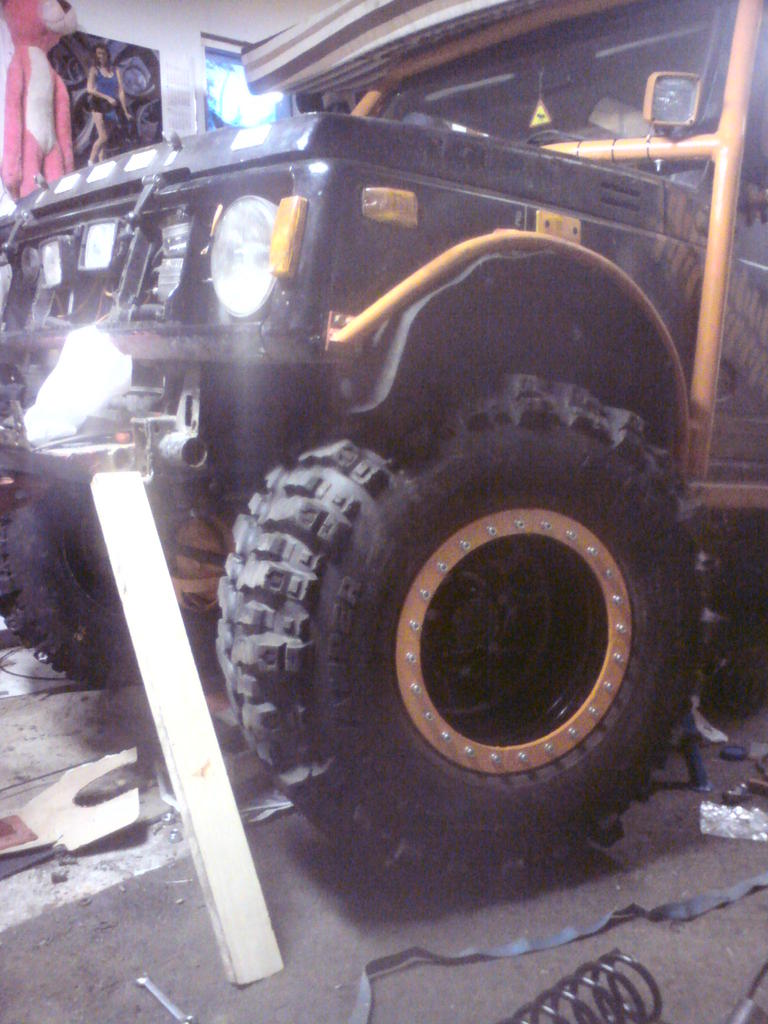 http://forums.offipalsta.com/picture...ictureid=49192 http://forums.offipalsta.com/picture...ictureid=49193 Quick Lockkii http://forums.offipalsta.com/picture...ictureid=49194 Pajalle sulamaan ajojen jälkeen oli hiukan jäässä! http://forums.offipalsta.com/picture...ictureid=49195 Nyt suikka onkin sisällä toisessa tallissa isommassa projektissa.. http://forums.offipalsta.com/picture...ictureid=49196 http://forums.offipalsta.com/picture...ictureid=49199 Tuli haettua tänään suikkaan boggereita varten isommat vanteet.. Kiitos Jylppy4x4:selle niistä. http://forums.offipalsta.com/picture...ictureid=49197 http://forums.offipalsta.com/picture...ictureid=49198 Huomenna hitsailla yhteen vanteeseen kehät ja käydä pyöräyttään boggeri siihen niin saa ihmetellä et millaset niistä tulee ja saako niitä sopiin tonne muuta ison rälläkän kans.. Huomenna jatkaan purkamista.. Akselit pois ja laatikot.. |